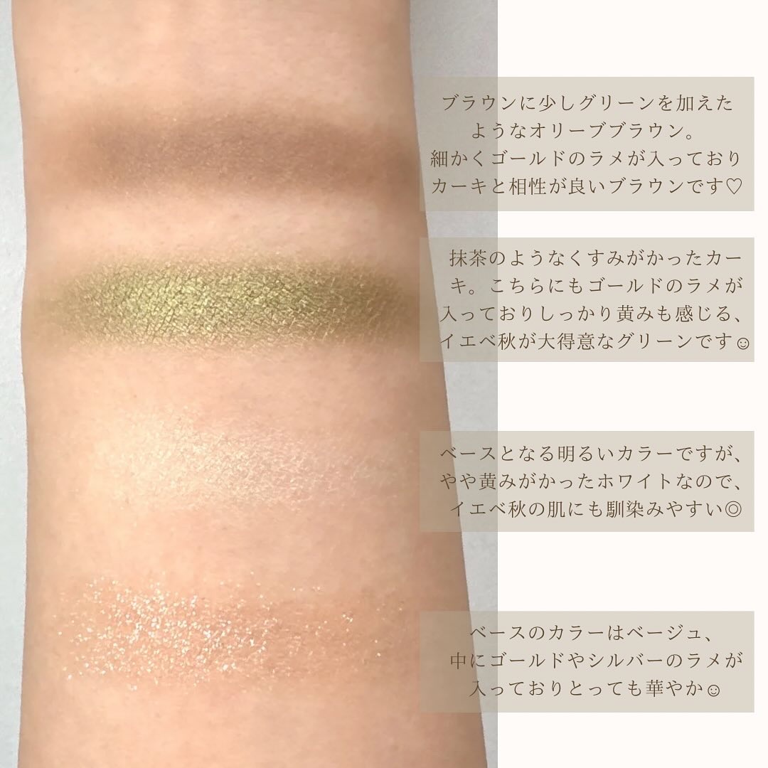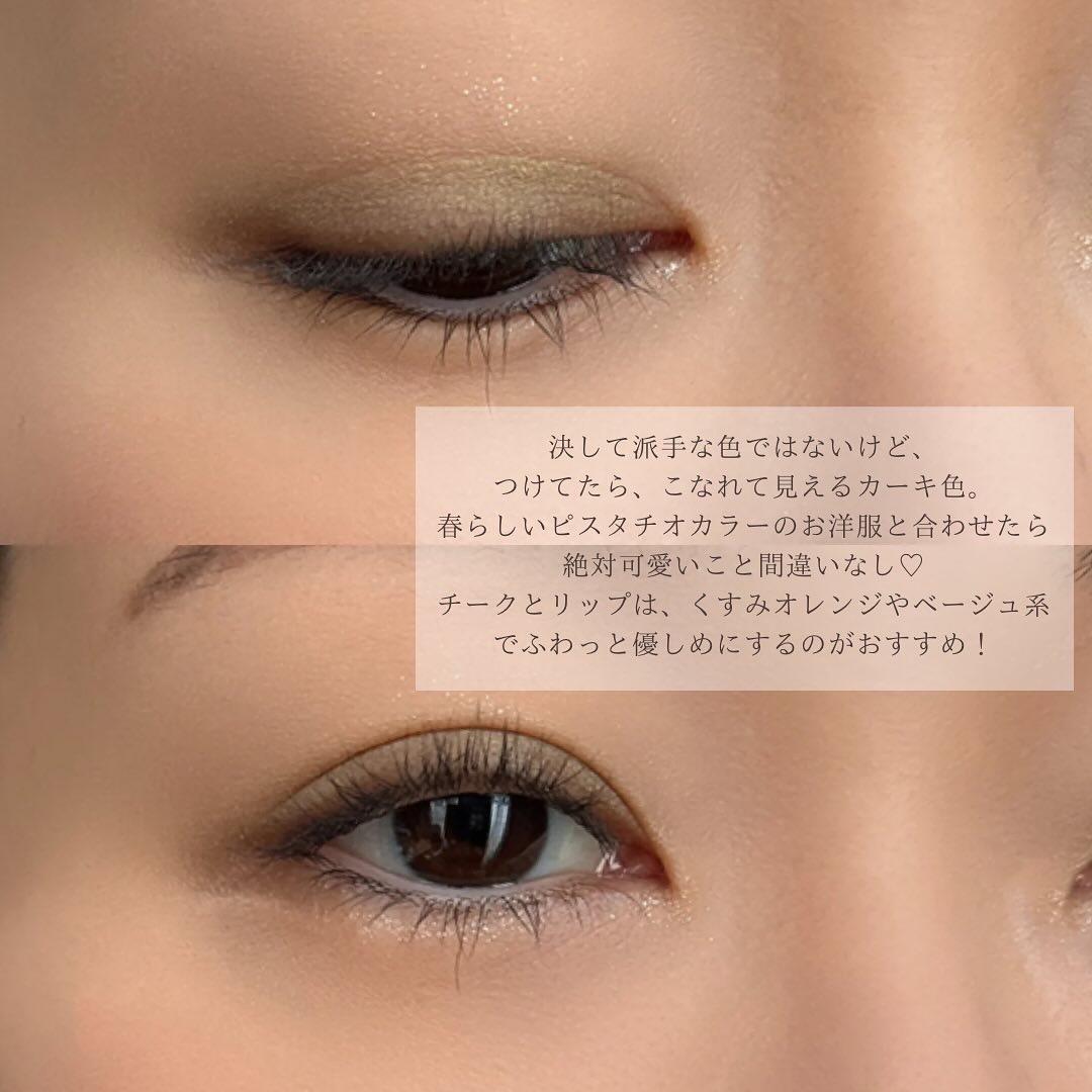 実はカーキ色も得意なカラーです🤍 舞台メイクを提案しているブランドなので、ラメも落ちにくく、アイシャドウの粉質も滑らか。お値段以上の価値がありおすすめです^^︎ 初めてのカーキメイクにもぴったりなので イエベ秋の方はぜひぜひチェックしてみてください☺️✨