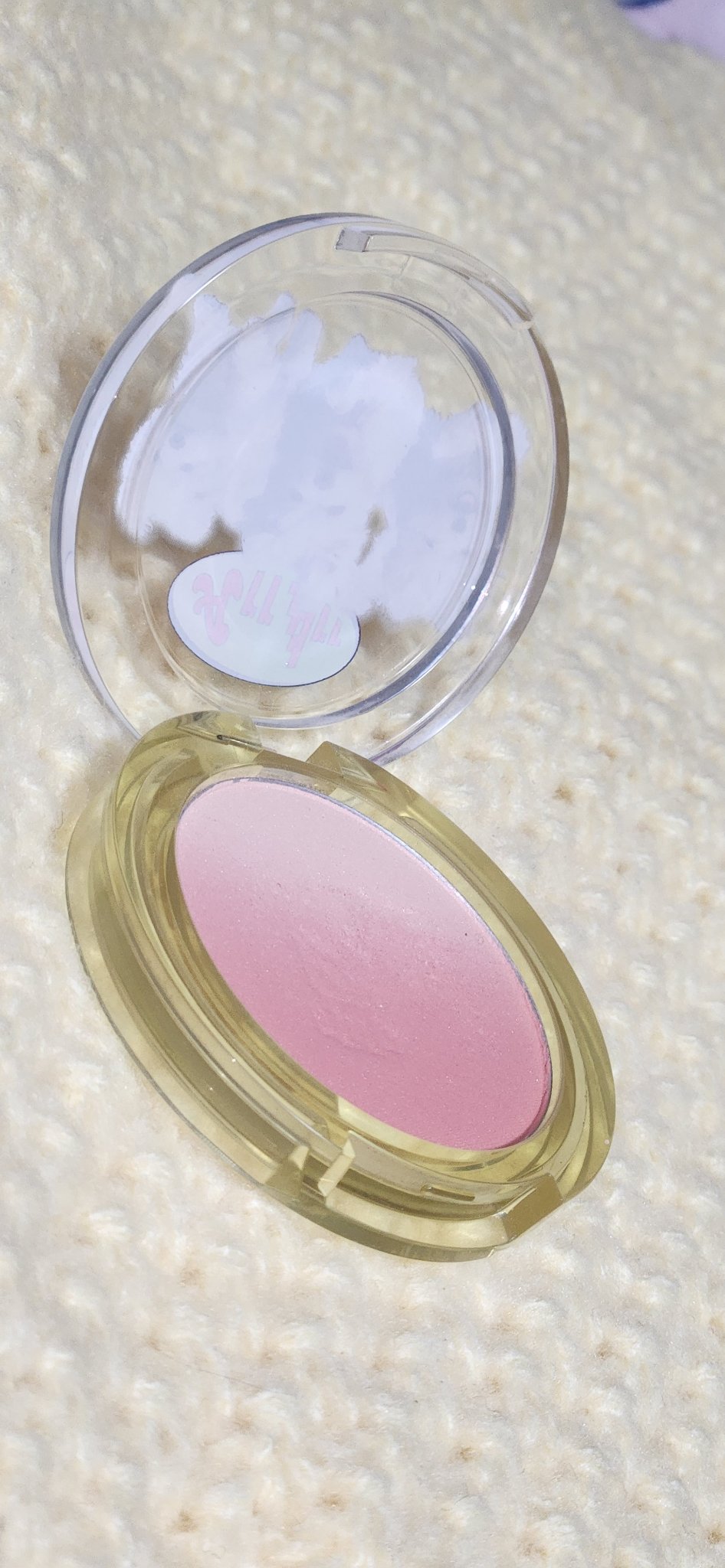 粉は全部ラメ?パール?が入っていて、発色いいのに透明感と立体感と輝きが塗るだけで出ます!明らかにプチプラや韓国コスメにはないデパコスらしい質感。 このカラーは仕上げラメらしきものはなくて、全部が似たような質感です。色分けは陰影を作るのに、ベースの薄ピンク、濃いピンク、茶色とイエベ春っぽいけど黄色に寄ってる感じはしないような絶妙な可愛いピンクメイクのためになってます。 真ん中のはアイシャドウベースとして使うもので、スフレのような気持ちいいさわり心地です。これの上にカラーを重ねると少しミルキーになった気がしました。