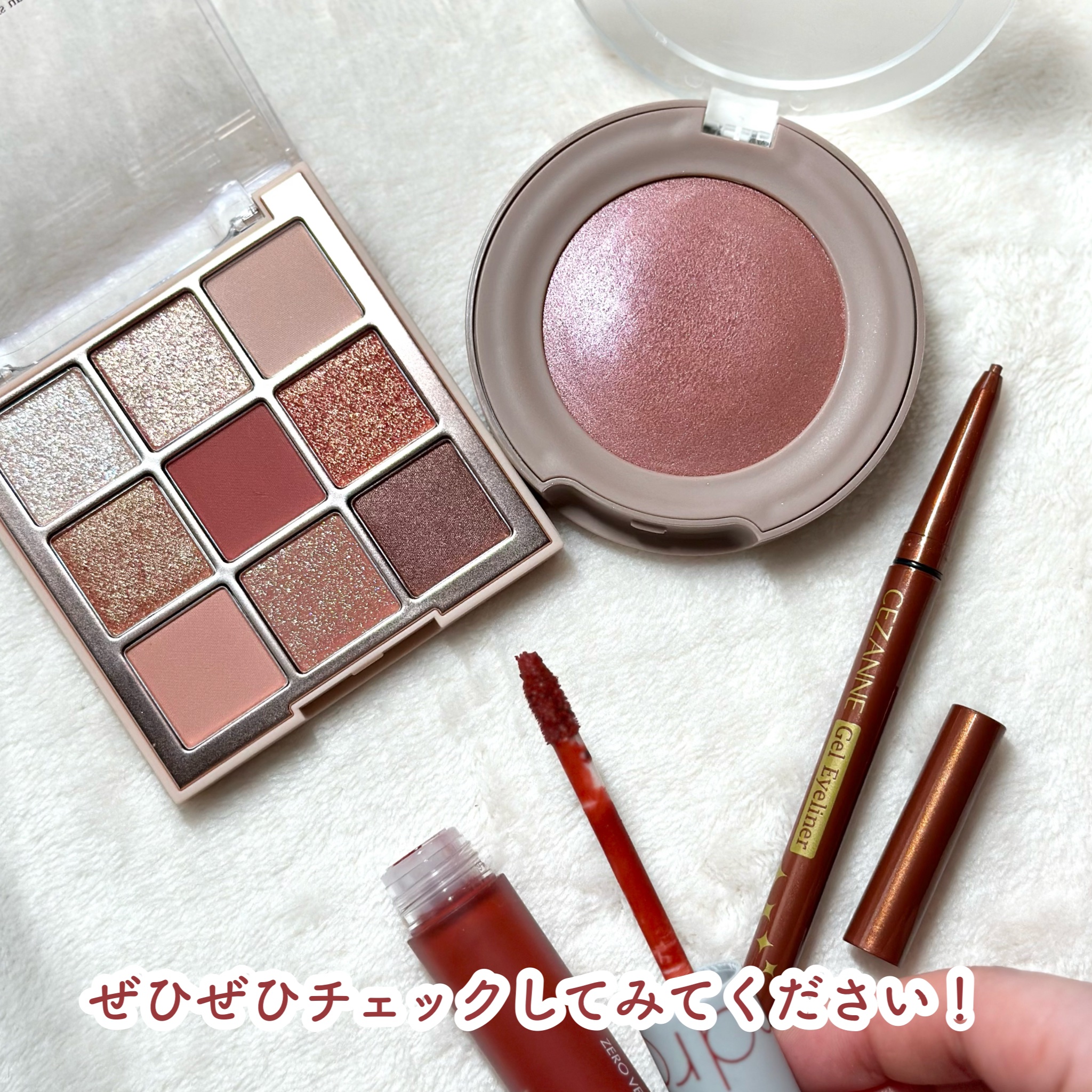 CEZANNEのジェルライナーめっちゃ良すぎる(( ⁎′̥̥̥ ⌑ ‵̥̥̥ ))!! 肌馴染みのいいカラーでうるうるで、ぜんぜん落ちない◎しかも550円税込って!!すごすぎます! 今回使ったのは50ピンクベージュです。 ・トーンアップアイシャドウ 10ベリーブラウン638円税込 ブラウンみが強いので甘すぎない仕上がりに♡ ベリーという名のとおり青みのあるピンクブラウンです。ブルベさん向け♡ ・描くふたえアイライナー 20影用グレージュ660円税込 絶妙な薄さと影感!これ以外涙袋ラインは考えられない! ・極細 アイライナーR 20ブラウン 638円税込 プチプラなのに描きやすいし、にじまない。ついつい手に取っちゃうアイライナー!
