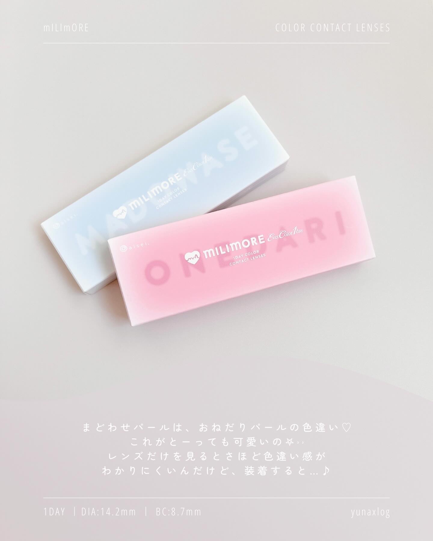 小さくても盛れる⟡.·ミリモア全8色レビュー💎🩶⟡エバーカラーワンデーミリモア全8色/各¥1,694(税込)▫️𝗟𝗘𝗡𝗦𝗦𝗣𝗘𝗖DIA:14.2mmG.DIA:13.1mm~13.6mmBC:8.7mm度数:±0.00~-8.00含水率:60...
