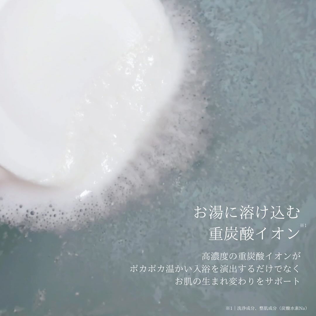 - ほのかに香るシトラスジンジャーの香り、重炭酸イオンと温浴による体のあたたまりでリラックスしたバスタイムを演出するタブレット錠の発泡入浴剤。 短過ぎず、長過ぎない炭酸持続性で、炭酸ガスから発生する重炭酸イオンがお湯の中に溶け込み、温浴効果をサポートしてぽかぽか感が持続します。水道水に含まれる塩素を除去する成分を配合している為、お肌にもやさしい肌あたり。 やわらかくなめらかな湯ざわりを体感できます。 また、無添加処方*を採用。敏感肌の方にもお使いいただけます。 生後3ヶ月以上の赤ちゃんも入浴可能です。 *合成着色料フリー、アルコールフリー、パラベンフリー