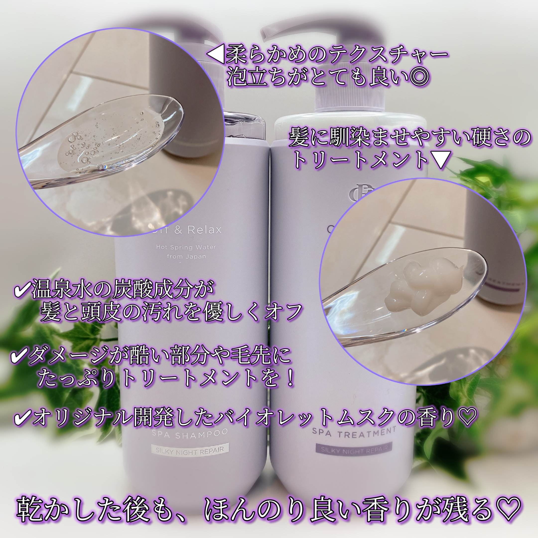 - Off&Relaxã·ã«ããŒãã€ããªãã¢ã¯é«ªã®ãã¡ãŒãžè£ä¿®ã«ç¹åããã·ãªãŒãºãåºé²ã»æ¹¯åã»ã¢ã«ãã¹ã®ïŒçš®ã®åœç£æž©æ³æ°Žãé ç®ãšé«ªã®æ±ããåªããèœãšããç¹å¥ã«é åãããããªãã«ã¿ãŠãªã³â»ïŒã髪ã«ããªã»ã³ã·ãäžããŸãã玫å€ç·ãããŒãããã¢ã«ã©ãŒããã®é«ªãã¡ãŒãžãäºé²ããããŒããããã¯ããã¯ãããžãŒâ»ïŒãæ¡çšããããã«äºå€§ä¿æ¹¿æåâ»ïŒãé åããŠé«ªãè¯ããè£ä¿®ããã¥ãŒãã£ã¯ã«ã®æŽã£ããµãã³åž°ãã®ãããªé«ªãžããªãªãžãã«ã«èª¿éŠãããã€ãªã¬ããã ã¹ã¯ã®éŠãã¯ããŸãã§éšäžããã®å€ã®è±å±æ·ããæŒããå²ãèªãè±ã ã®åã ããããã©ããç¥ç§çã§è ±æçãªéŠããããªãã®ãã¹ã«ãŒã ãå ã¿èŸŒã¿ãŸãã â»ïŒã³ã³ã€ã«ã¡ãã«ã¿ãŠãªã³Naãã³ã³ã€ã«ã¡ãã«ã¿ãŠãªã³ã¿ãŠãªã³Naãã¿ãŠãªã³â»ïŒã¡ããŠãã©ãŒã -ÎŽ- ã©ã¯ãã³é åã«ãããã¡ãŒãžè£ä¿®ã®ããšâ»ïŒãŠãºã»ã©ãããã³ãšã³ã¶ã€ã Q10ããã¬ãããŒã¹ããã¢ã«ãã³é žã倧è±ã¿ã³ãã¯