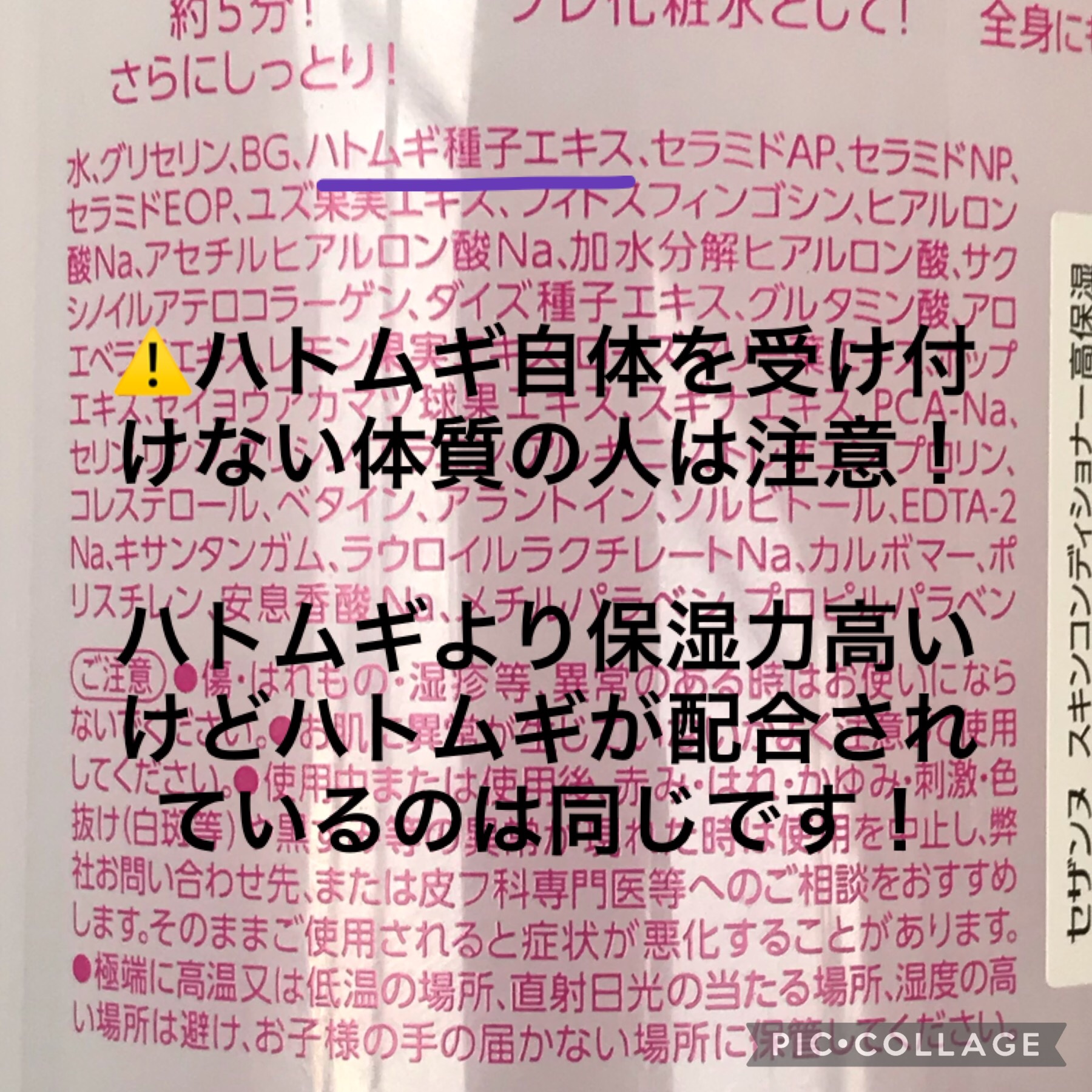 - <スキンコンディショナー高保湿> 水、グリセリン、BG、ハトムギ種子エキス、セラミドAP、セラミドNP、セラミドEOP、ユズ果実エキス、フィトスフィンゴシン、ヒアルロン酸Na、アセチルヒアルロン酸Na、加水分解ヒアルロン酸、サクシノイルアテロコラーゲン、ダイズ種子エキス、グルタミン酸、アロエベラ葉エキス、レモン果実エキス、ローズマリー葉エキス、ホップエキス、セイヨウアカマツ球果エキス、スギナエキス、PCA-Na、セリン、リシン、グリシン、アラニン、アルギニン、トレオニン、プロリン、コレステロール、ベタイン、アラントイン、ソルビトール、EDTA-2Na、キサンタンガム、ラウロイルラクチレートNa、カルボマー、ポリスチレン、安息香酸Na、メチルパラベン、プロピルパラベン
