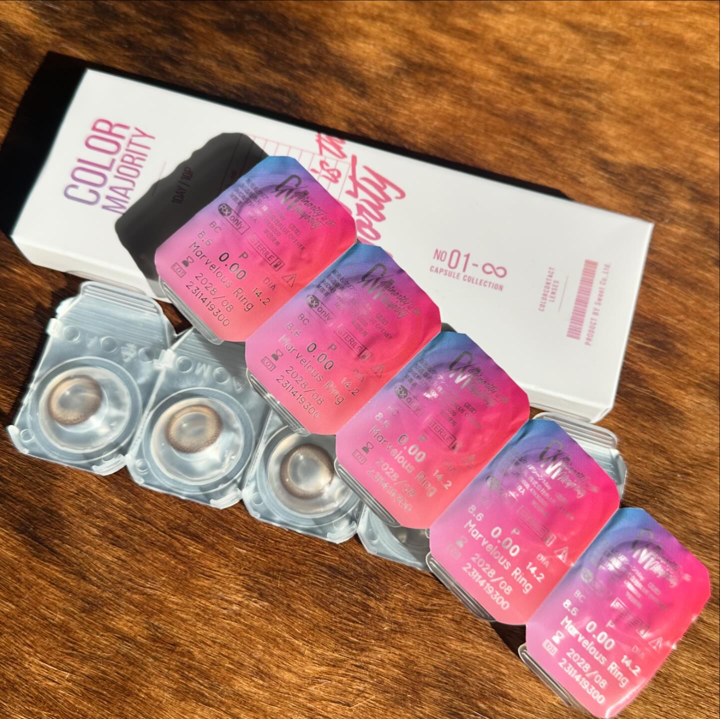 ナチュラルからギャル盛れまで幅広いデザインが豊富な全16色展開🌈 今回はその中の8色(DIA:14.2mm)を詳しくレビューしていきます☝🏻⸒⸒ 万人ウケする王道ブラウンカラコン🤎 清楚系好きな方におすすめ🕊️ 発色のいいミントカラーとグレーの組み合わせが綺麗✨️ 透明感UPさせてくれるカラコンです🫧