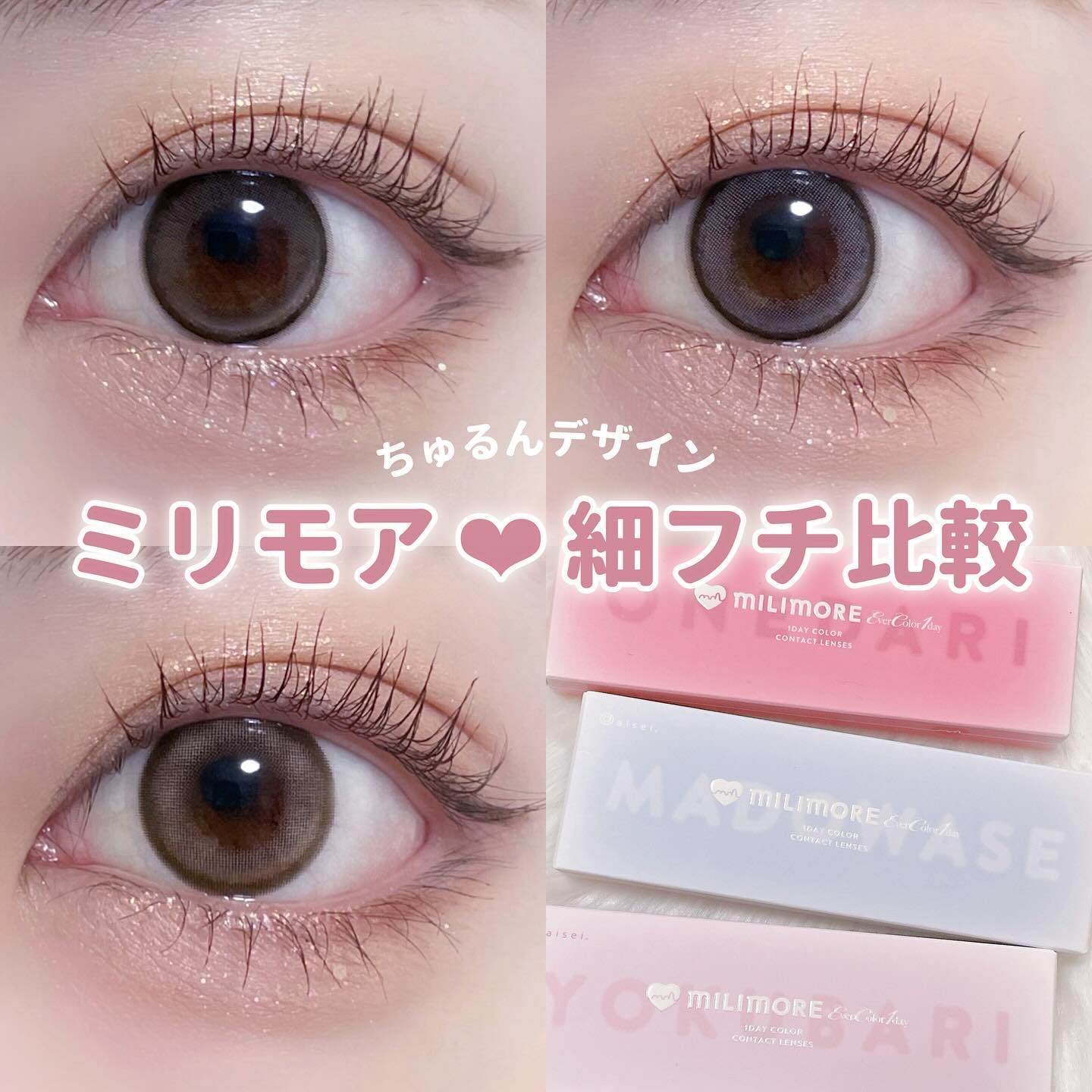 小さくても盛れる⟡.·ミリモア全8色レビュー💎🩶⟡エバーカラーワンデーミリモア全8色/各¥1,694(税込)▫️𝗟𝗘𝗡𝗦𝗦𝗣𝗘𝗖DIA:14.2mmG.DIA:13.1mm~13.6mmBC:8.7mm度数:±0.00~-8.00含水率:60...