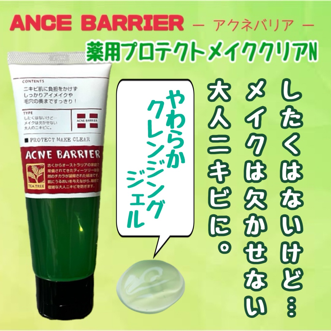 ニキビケアの強い味方!アクネバリアシリーズ♡肌荒れやニキビが気になるときに頼りになる【アクネバリア】の薬用シリーズ。優しい使い心地ながら、毛穴詰まりやニキビの原因をしっかりケアしてくれる♡ 薬用プロテクトメイククリアニキビの原因である毛穴詰まりやメイクをしっかり落とす。やわらかジェルでするりとメイクオフできるところが良い! 毎日のケアで「肌を守る」という意味の“プロテクト”を実感できるシリーズです!ニキビケアを探している方にぜひ試してほしい!