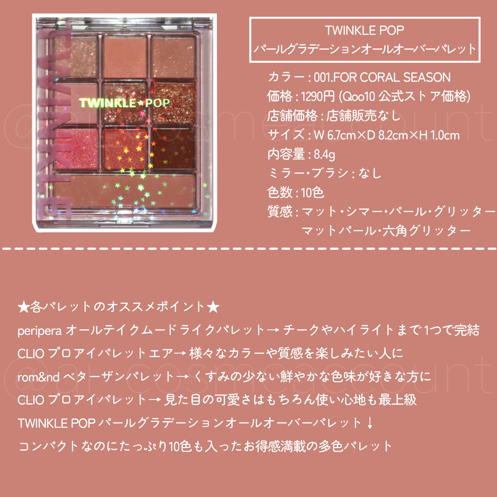 | アイシャドウパレットランキング第5位 | 生で見た時の破壊力!!! 繊細なラメも色味もド真ん中に直球なタイプすぎました💞 | 詳細を見る | |