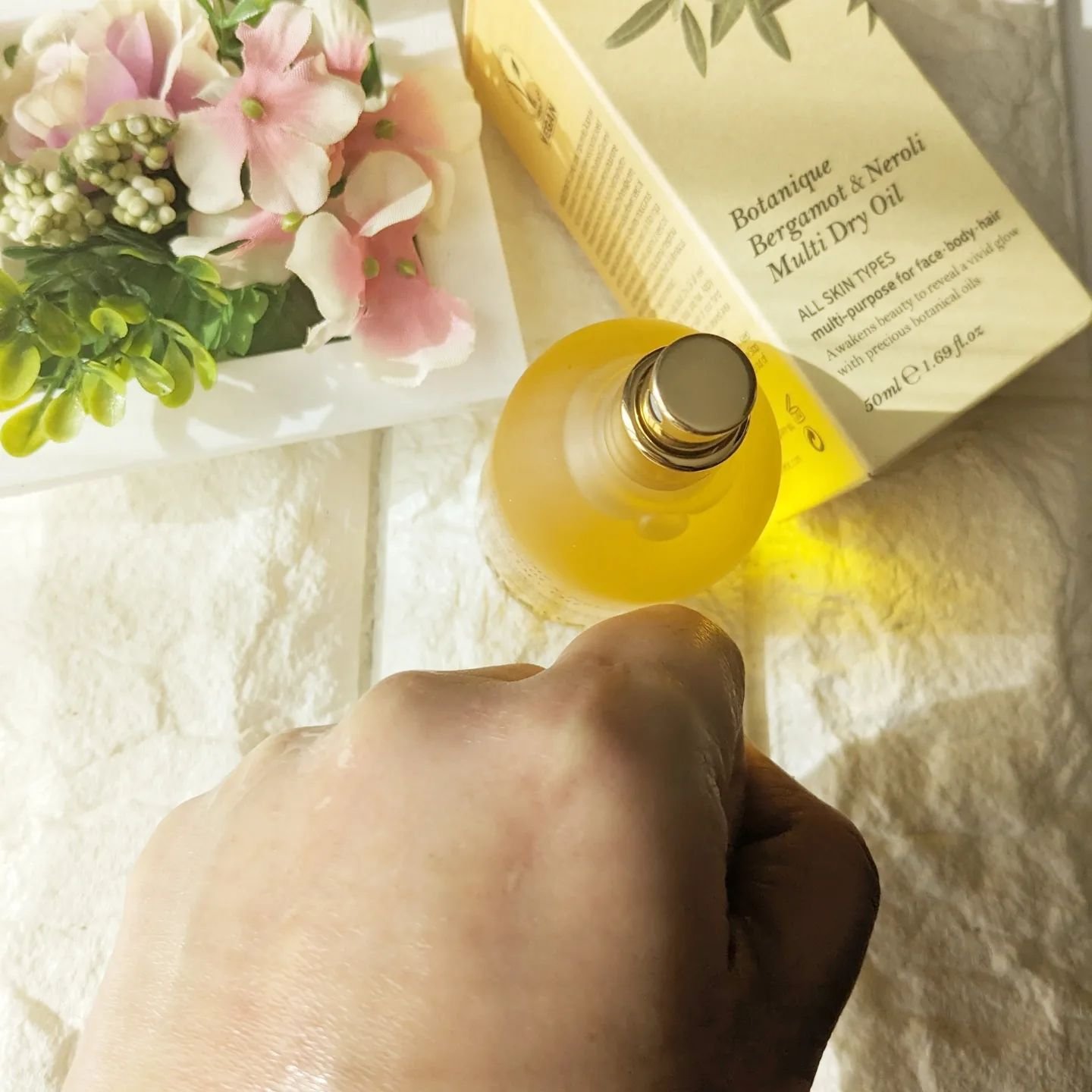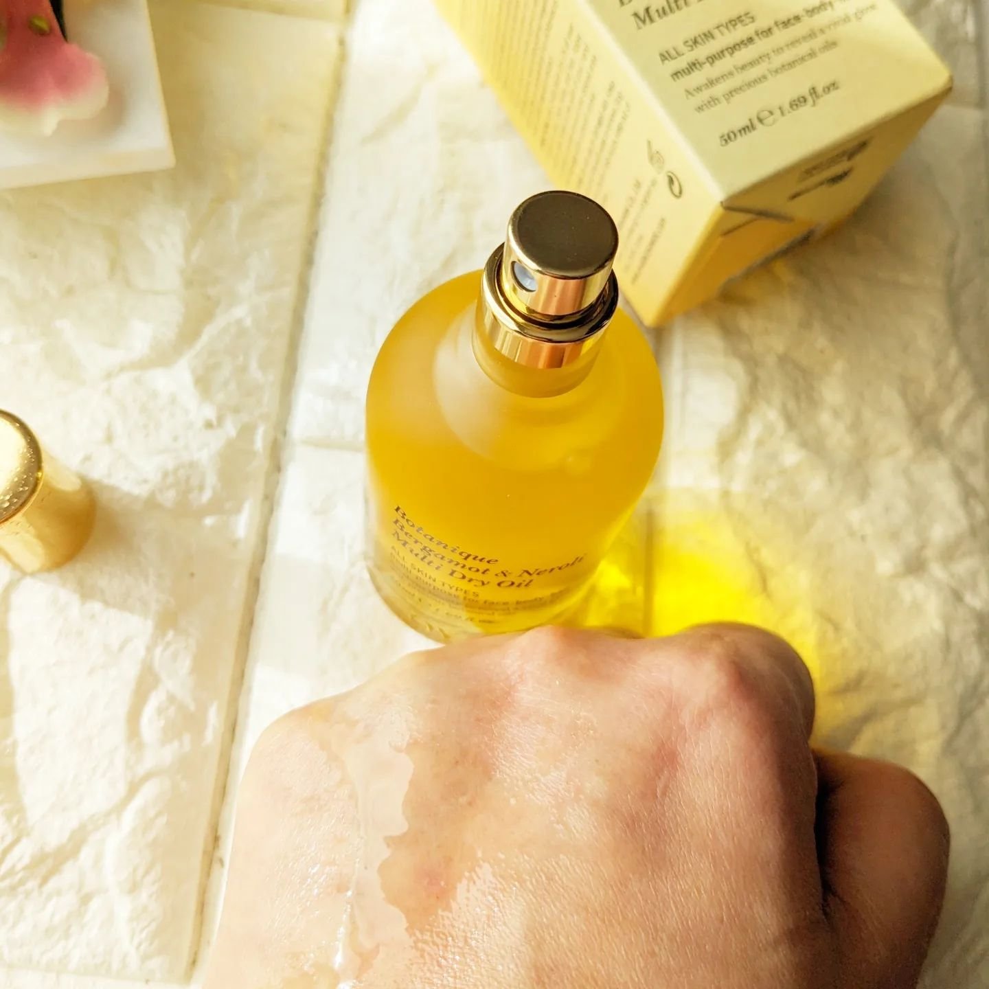 高級感のあるパケがなんとも美しい✨ 香りは2種類‼️ ボタニクB&Nドライオイルはさらっと変やかな シトラスアロマティック系✨ 優しく香るよ♡ 7種の天然オイルを240時間発酵させることで天然の防腐剤の役割に(韓国のキムチが長持ちすることと同じ発想です)✔️ スプレータイプで使いやすく酸化を遅らせる仕様☝️ サラッと柔らかいテクスチャーのオイルは伸びも良くベタつかない‼️ ボディに塗るのもネイルに塗るのもかなり使い心地いい😍💕 季節問わず使いやすい🌸