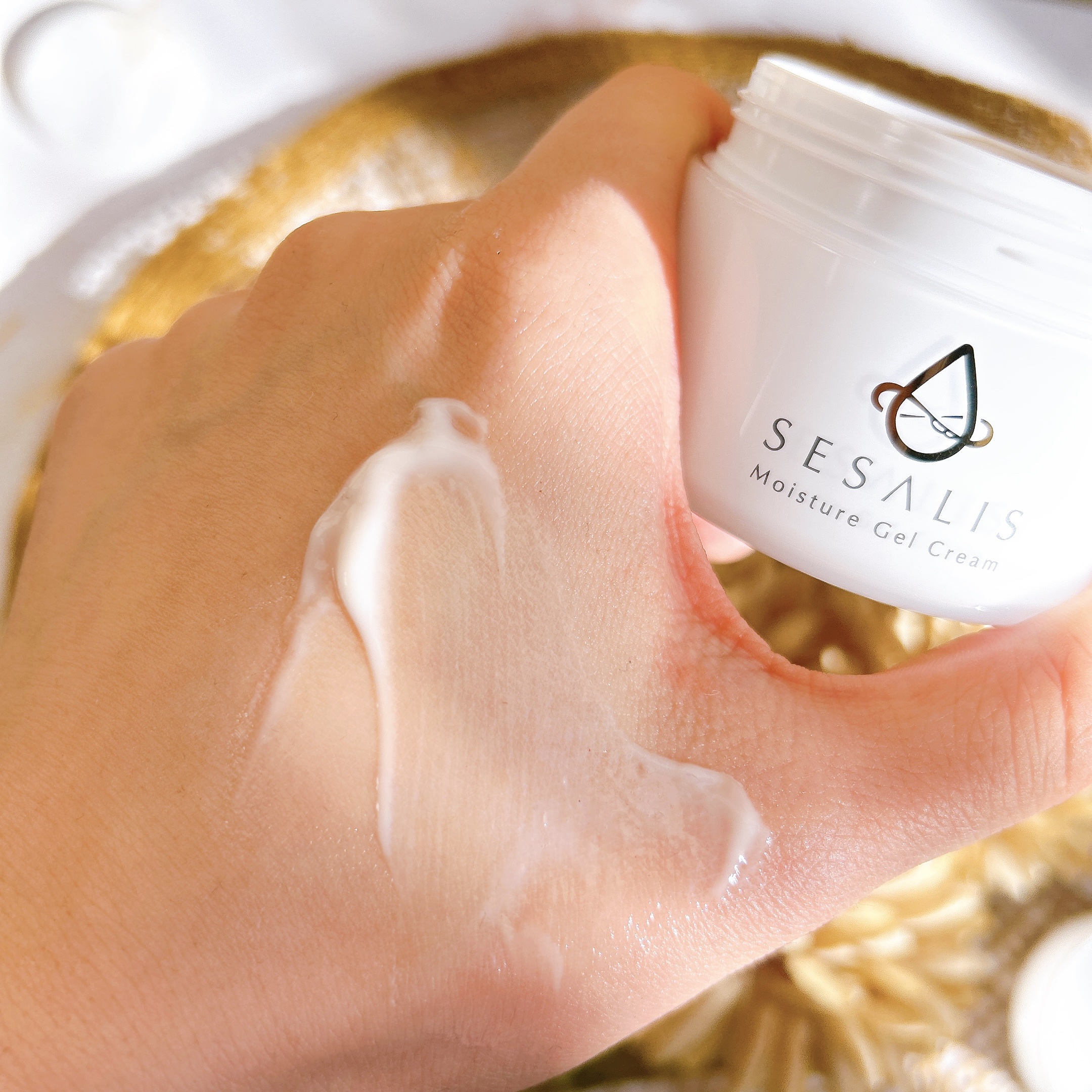 - ごまの生命力に着目したスキンケアブランド「SESALIS」から、保湿効果が高いセサミオイルを贅沢に配合し、大人肌の悩みをケアするオイルイン・ジェルクリームが誕生。 ぷるんとしたジェルクリームが角層のすみずみまでみずみずしいほどのうるおいで満たし、ハリ・ツヤあふれるキメの細かいなめらかな肌に整えることで、朝はメイクのノリを良くし、夜はなめらかな素肌へと導きます。 古来よりアーユルヴェーダで使用され5000年以上の歴史をもつセサミオイルは肌の角層に浸透しやすいといわれており、高い保湿効果が期待できます。私たちは、世界各地から集めたごまを自社で厳選し、搾り、そして圧搾後のオイルに含まれる不純物を取り除くといった数々の工程を経て、混じり気のない「ピュアオイル」へと仕上げました。モイスチャージェルクリームには、そんな“ピュア”なセサミオイルをシンプルに、たっぷりと配合。さらに、独自の処方でセサミオイルを非常に細かく分散させ、ジェルクリーム特有のベタつきを抑えたさらりとしたつけ心地を実現しました。 無香料・無着色でどんなときでも心地よく、気軽にお使いいただけます。 フリー成分 石油系界面活性剤・パラベン・エタノール・鉱物油・合成着色料・合成香料