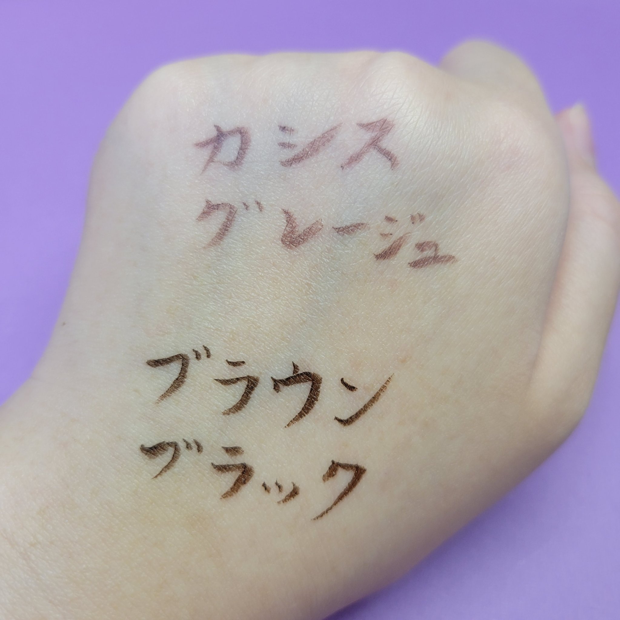 - 筆先までずっとなめらか、目尻で感動するリキッドアイライナー。 必要な量が肌にのる新設計で、まぶたの上をすべるような、滑らかな描き心地。しなやかでコシのある筆が、筆圧のコントロールを容易にし、太いラインも細いラインも思い通りに仕上げます。水、汗、涙に強いウォータープルーフタイプなのに、通常洗顔で簡単オフ。肌に色素が残らない顔料を使用。5種類の美容液成分を従来品の200%配合し、メイクしながら目元ケアまで。 ●ブラウンブラック ※2020年9月12日 バラエティショップ先行発売 ●漆黒ブラック ※2020年12月頃発売予定 ●ナチュラルブラウン ※2020年12月頃発売予定 ●シフォンブラウン 「毎日メイクに透明感と抜け感」 ブラウンでも、グレーでも、ベージュでもないニュアンスカラー。 自然な印影で素の目元を際立て、頑張りすぎない、ふんわりとした目元に。 ●アプリコットブラウン 「じゅわっと血色感。 肌に馴染むおしゃれカラー」 温かみのあるアプリコットがじゅわっと滲む血色感を目元に演出。 肌馴染みが良いので、カラーライナーに抵抗がある方もブラウンの延長線上で楽しめる、使いやすい色味です。 ”ちょっとオシャレ”な空気感を演出するカラー。 ●ピンクショコラ アイライナー 「ピンクが溶け込む濃厚ブラウン」 肌馴染みが良く、目元にじんわり血色感をプラス。 さりげなく女性らしさが加速するようなカラー。 ●ピスタチオラテ (2022年7月29日(金)発売) 「“目尻”に抜け感アクセント」 肌に馴染むのに映える絶妙なグリーン。 トレンドカラーに“くすみ”と“抜け感”をプラスしたまろやかな発色。 ●マスタードブラウン 「“イエロー”が揺れる、大人の洒落色」 (2022年7月29日(金)発売) まるで太陽のような暖かさを感じる新しいブラウン。 ほんのり感じるイエローでメイクが一気に垢抜ける稀有な色。 ●シフォンピンク(2023年2月10日発売) 「ふんわり柔らか"まろみピンク"」 甘くなりすぎない青みニュアンスで目元の透明感UP。 目元を引き締め、ピンクメイクにありがちな腫れぼったさを解消。 ●ミルクカプチーノ(2023年4月21日発売) まろやかな深みの“優しい締め色” どんなメイクにも合わせやすいカラー。 自然な陰影でさりげなく目幅を拡張します。 ●グレーカシミア(2023年10月1日発売) ブラウンがほんのり溶け込んだ、暖色グレー まろやかな発色で、パーソナルカラーを問わず肌に馴染む 目元の陰影になりすまし、抜け感と目力を欲張りに叶える ●ダークフィグ(2024年6月1日発売) するする”なめらか。描きやすいのに、落ちにくい。 クッキリ可愛いほの甘ダークブラウン ●ピーチモカ(2024年8月1日発売) ふわっと自然に盛れる“桃色ブラウン” ほんのり血色感で目元にうるみ感を演出 ●スターダストブラウン(2024年12月11日発売) キラッと繊細に輝く''星屑ブラウン'' 透け感のあるダークブラウンの色味とラメの輝きが、目元に艶のある立体感を演出 ●チャコールモカ(2025年4月10日発売) 目元を締める''深みグレージュ'' 黄みや赤みに偏りすぎない絶妙な色設計で、自然に目元を強調