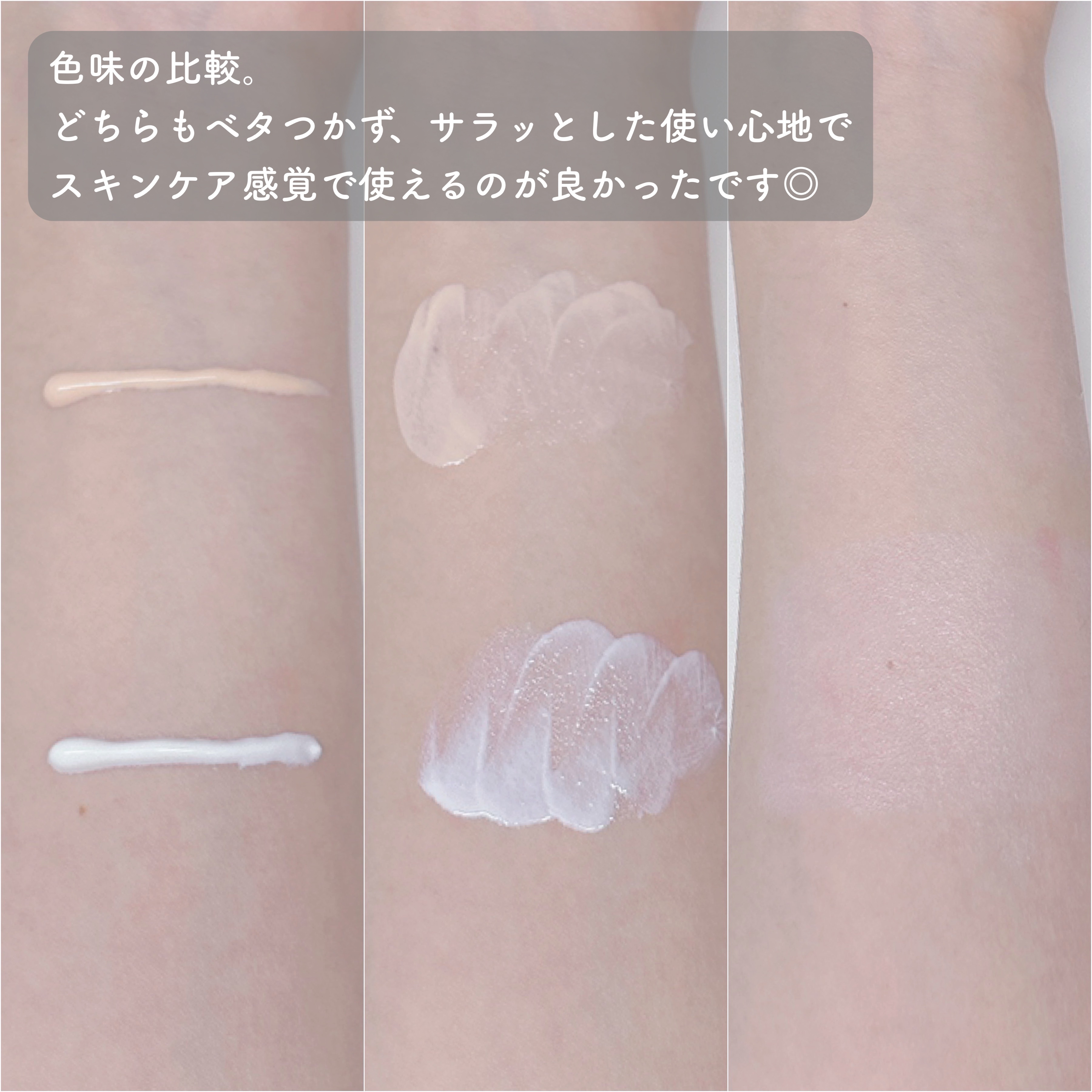 みずみずしく、サラッとしたテクスチャー。 すーっと化粧水感覚で伸びてくれて、密着してくれる🫶 さっと塗っただけでもツヤ肌を仕込めるけど、 重ねることで更にツヤ感が増す気がします。 内側から自然なパール感のツヤ肌になれるので、 ツヤ肌好きな人にはぜひおすすめしたいです〜✨️