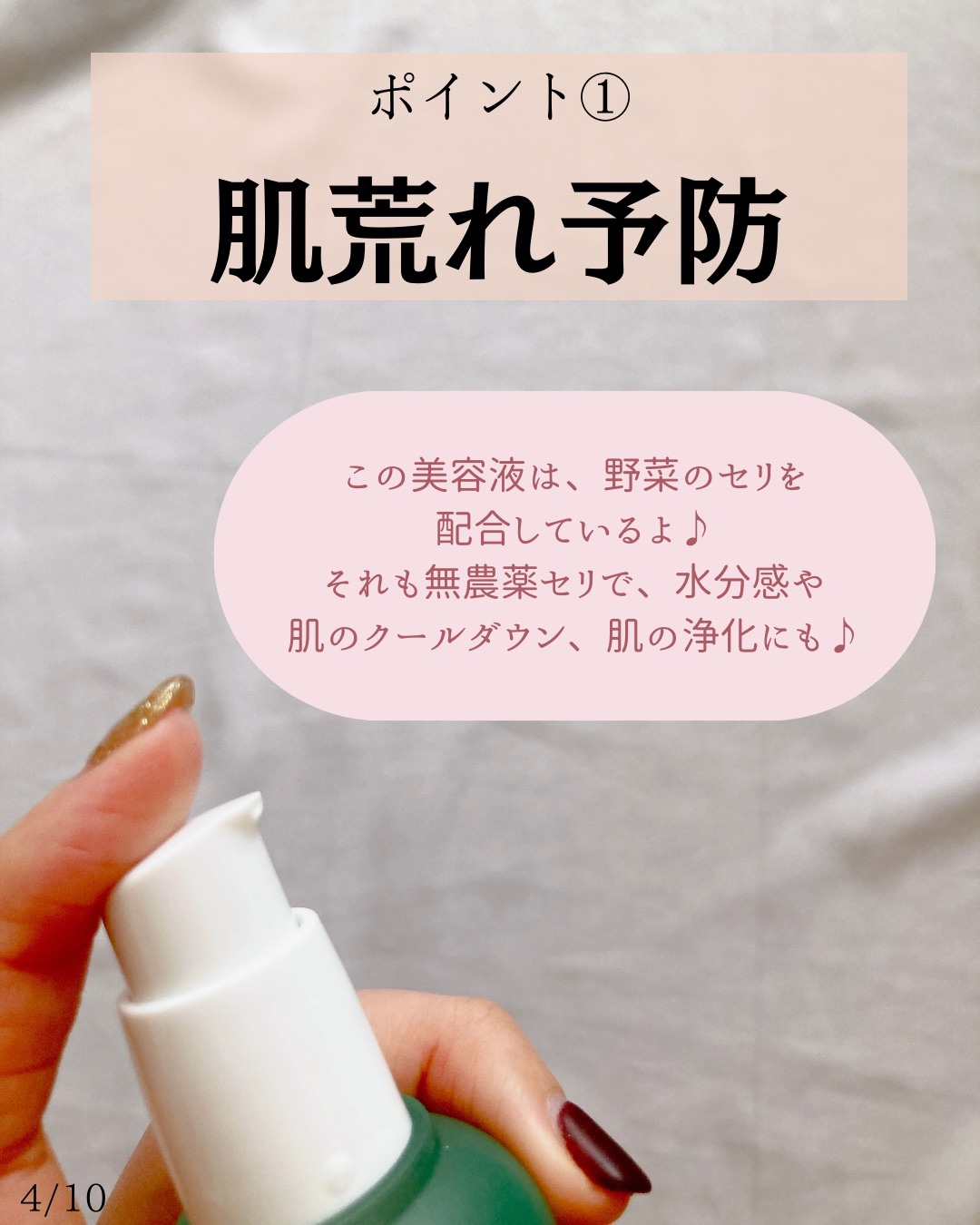 無農薬セリエキス配合で、ほてった肌やトラブル肌を素早く鎮静するセラムです。 5重のヒアルロン酸が、丈夫な水分バリアを形成し、素早く鎮静して、水分を補給して閉じ込めるからみずみずしい肌に! テクスチャーもみずみずしくて、素早く浸透していくから、寝る前のケアにももちろん、メイク前にも使いやすかったです🤡✨
