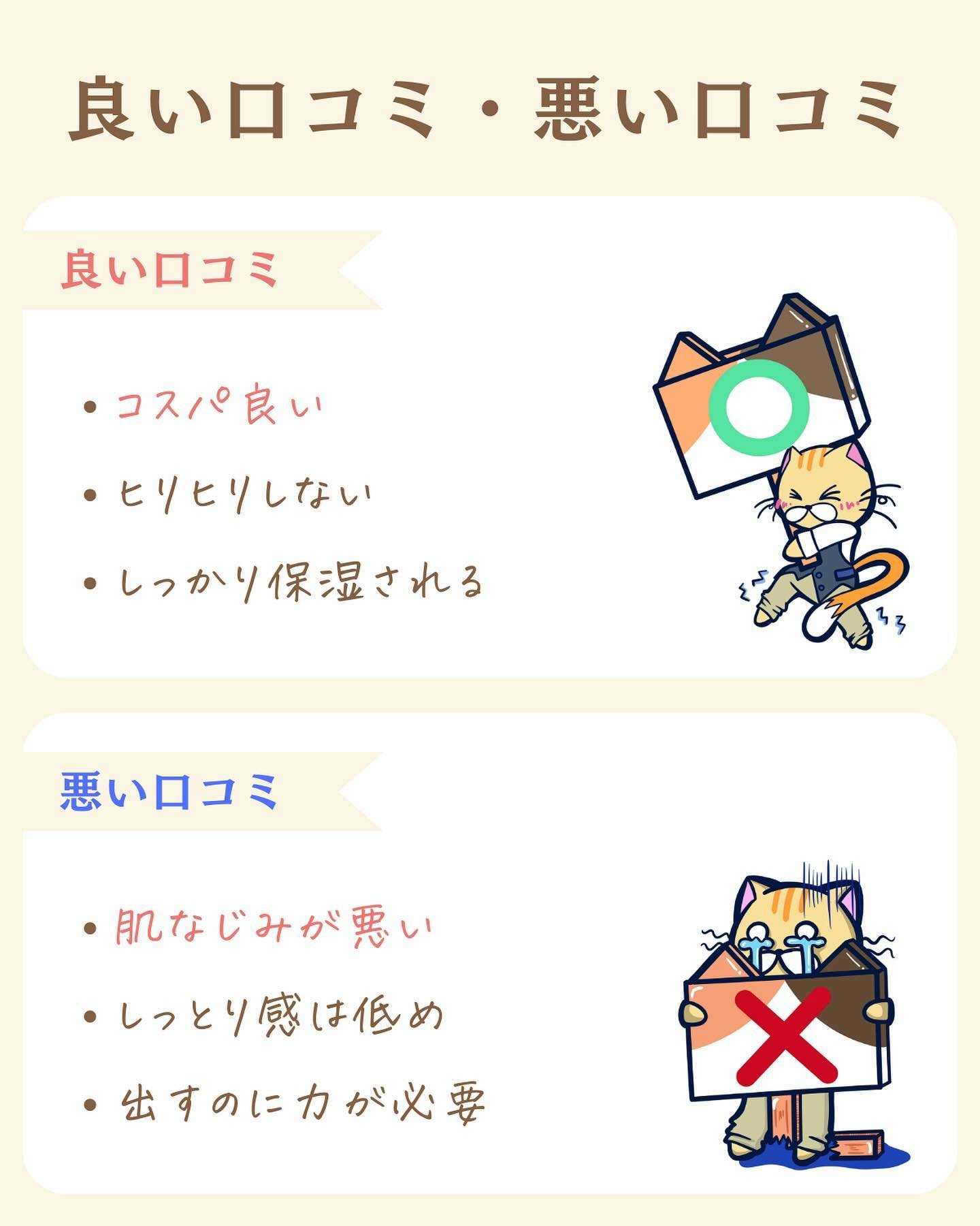 腕に塗布してから30分経過した肌水分量の平均増加率は+87%と優秀すぎる保湿力 サラッとした仕上がり DPG配合 美白有効成分のホワイトトラネキサム酸や、追加された肌荒れ防止有効成分のアラントインが配合 ぬるぬる感は強め 少ししっとりした仕上がりでしっとりタイプの乳液を塗ったような保湿力 有効成分のナイアシンアミドが配合 うるおい成分として3種類のヒアルロン酸が配合