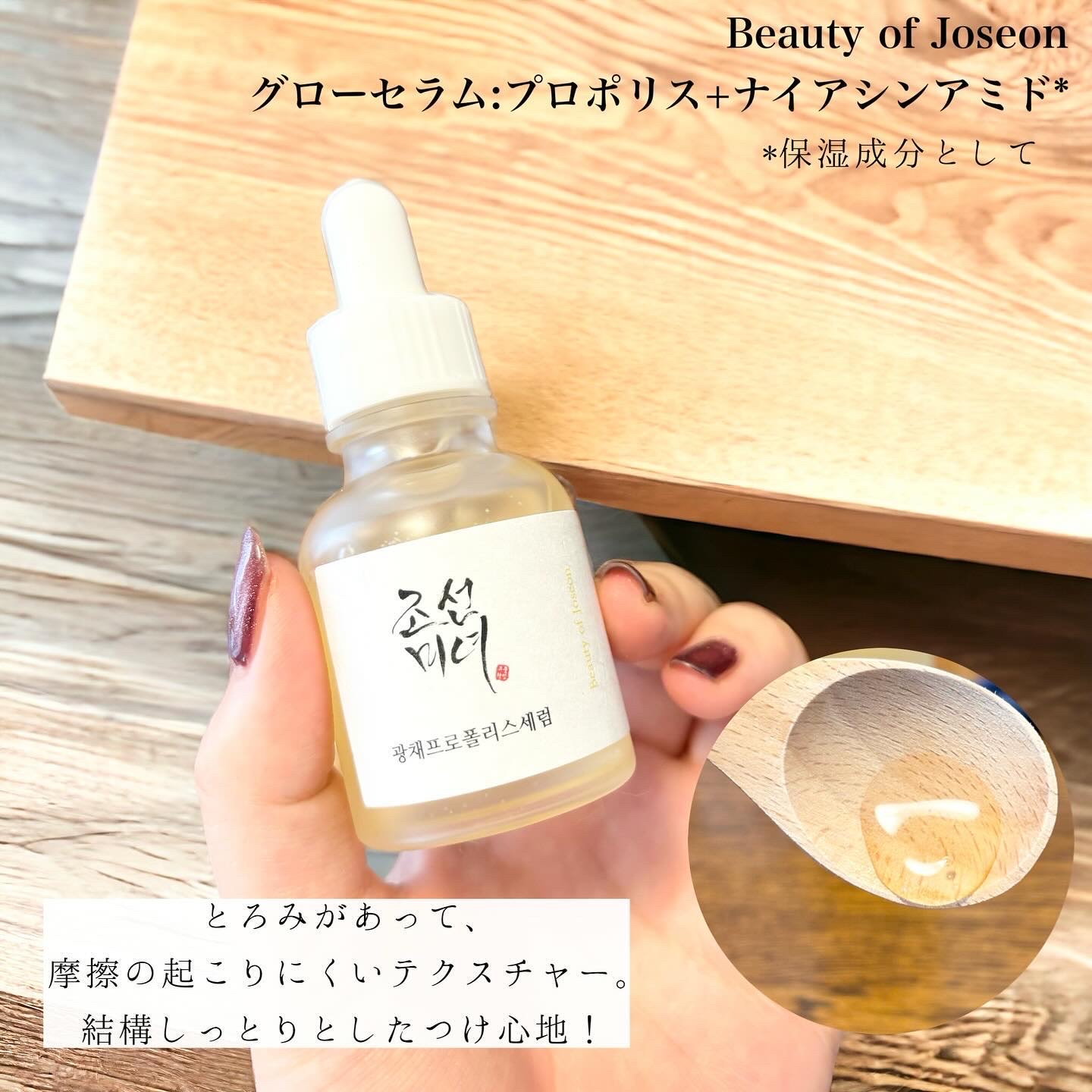 BeautyofJoseon 光彩プロポリスセラムおすすめポイント◯プロポリスとナイアシンアミド配合でニキビや毛穴ケアができる◯とろみのあるテクスチャーだけどそこまでベタつき感はなく、朝晩どちらでも使いやすい◯スポイトタイプなので一回分取りや...