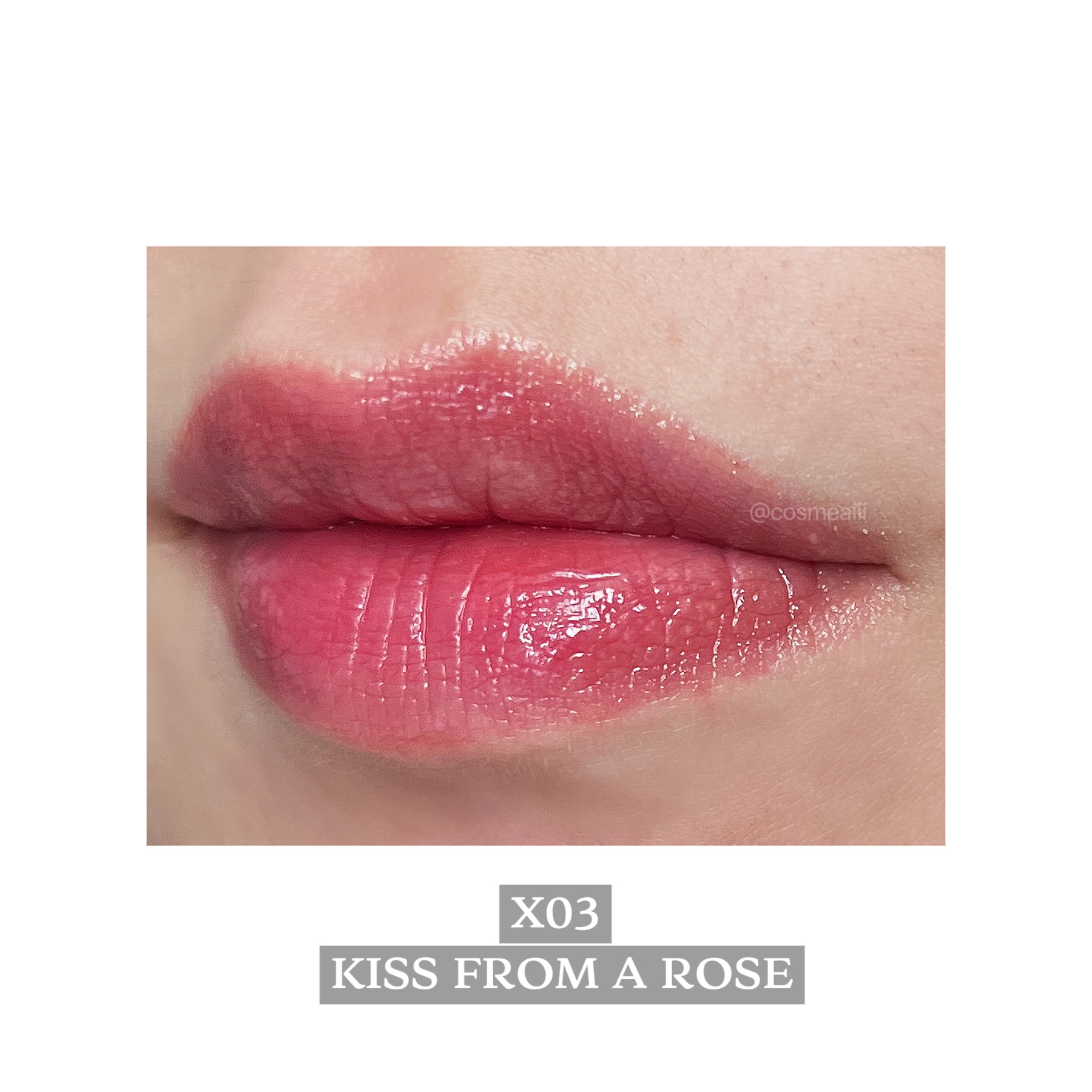 思ったより可愛いから、気になる方ぜひご参考に!💭💕 ゴールドピンクカラーの四角いパケ プチプラでは思わない高級感を感じる✨ リップ自体の硬さが硬めで、唇の温度で溶けたりはしない、蓋が汚くならないところがすごくお気に入り🩷 個人的には03と05が大好き。イエベさんめっちゃおすすめします!