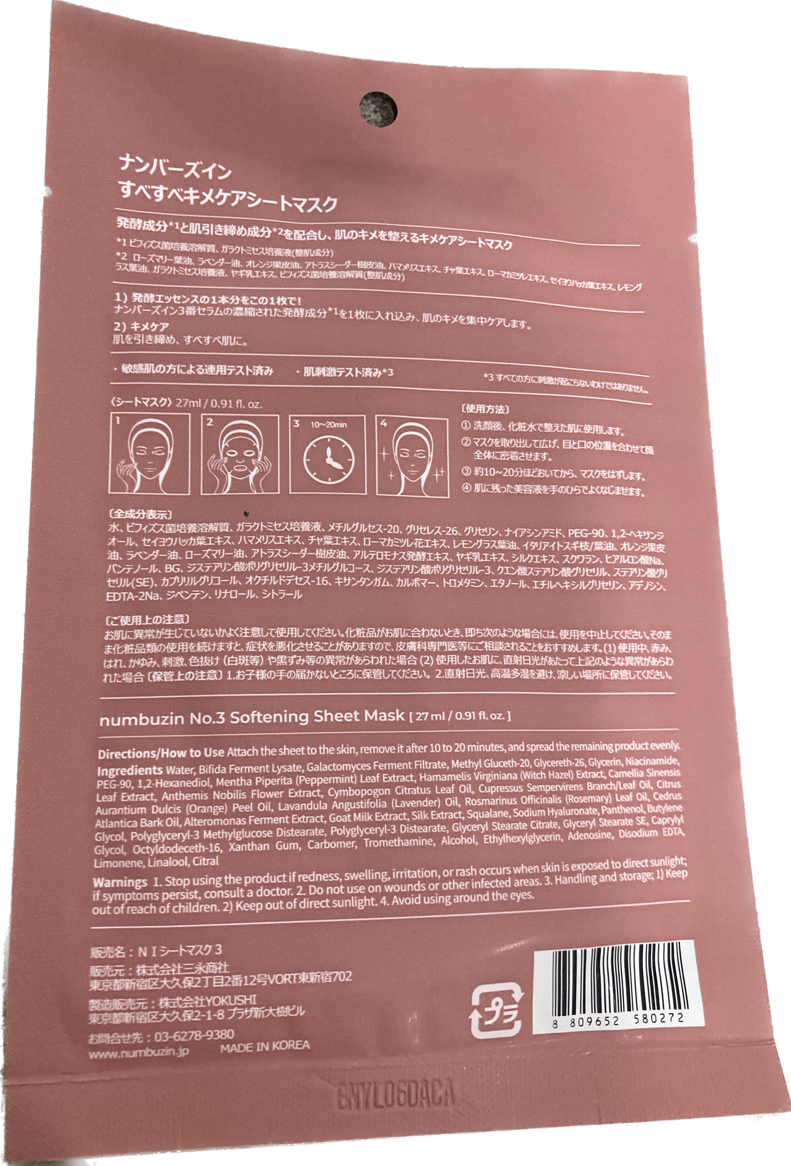 商品詳細情報numbuzin 3番 すべすべキメケアシートマスク