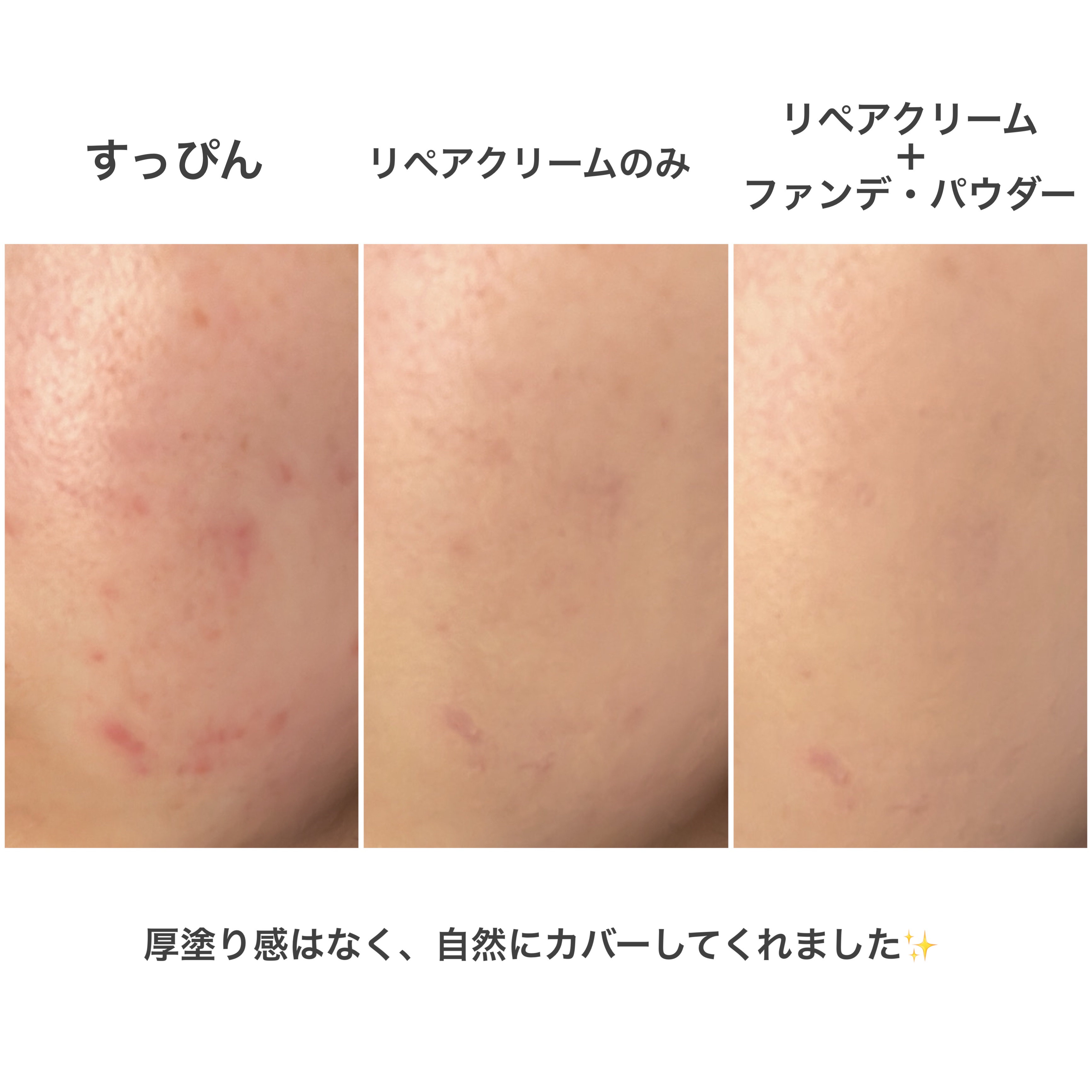 - 隠すことは、防ぐこと。 ニキビを忘れる※1、ベージュタイプの薬用リペアクリーム。 赤み・ニキビ跡・色ムラを自然にカバーしながら、予兆にアプローチ 毎日のケアで、ニキビを未然に防ぐ、そしてシミにしない※2 肌に自然になじむベージュタイプ。 有効成分 イソプロピルメチルフェノール、グリチルリチン酸ジカリウム、ビタミンC誘導体配合。ニキビ・肌荒れ・シミを防ぎます※2。 のびの良いクリームが、塗布した瞬間にサラサラのパウダーに変化するウォーターインシリコン処方採用。毛穴をふさがず、肌に負担をかけません。 赤み・ニキビ跡・色ムラを自然にカバーする色設計&ソフトフォーカス効果。ファンデーションを重ねてもキレイに仕上がります。 肌コンディションをすこやかに保つ、整肌・保湿成分「ユキノシタエキス」「アーティチョークエキス」配合。 ※1カバー効果による ※2メラニンの生成を抑え、シミ・ソバカスを防ぐ ■色素が直接肌に触れない独自技術PV技術を採用。 ■低刺激性・無香料・アルコール(エタノール)フリー・アレルギーテスト済・パッチテスト済・ノンコメドジェニックテスト済 (すべての方にアレルギー・肌トラブルが起こらない、ニキビのもと(コメド)ができないというわけではありません。)