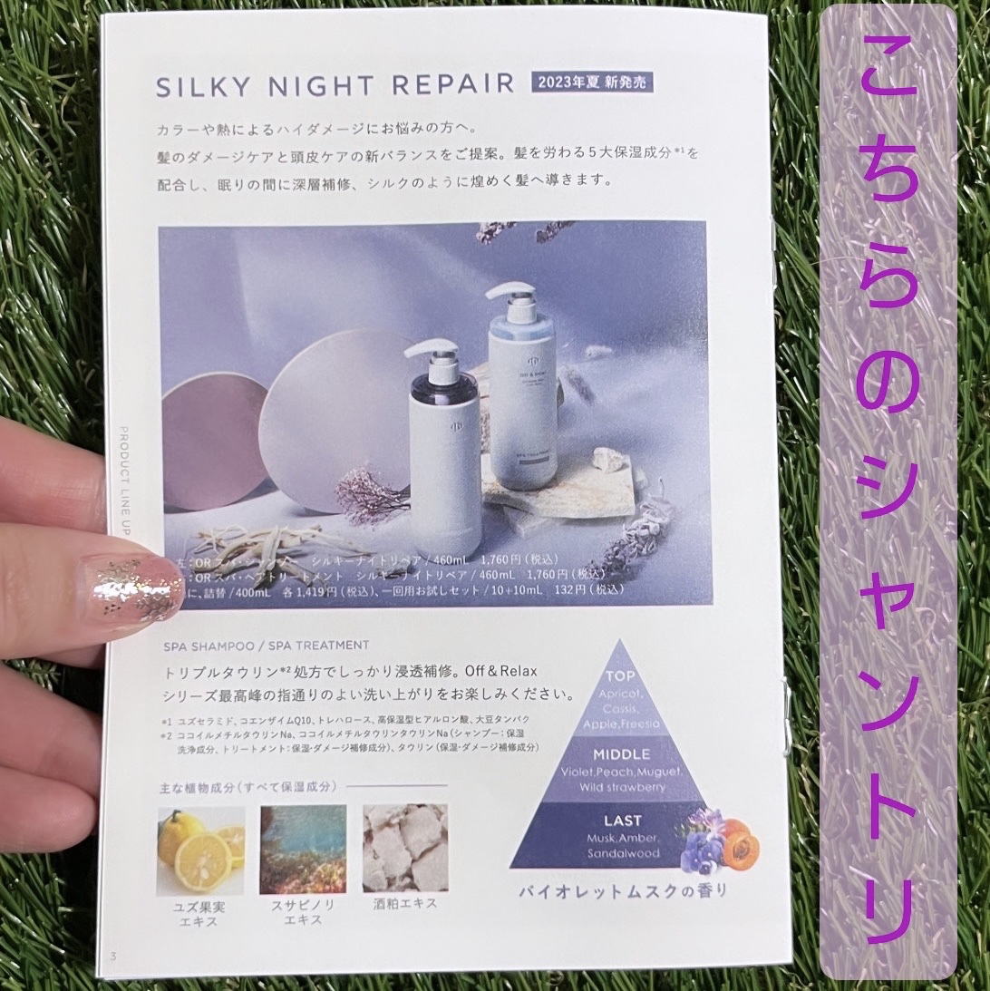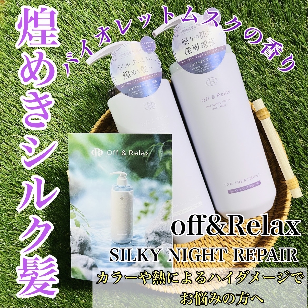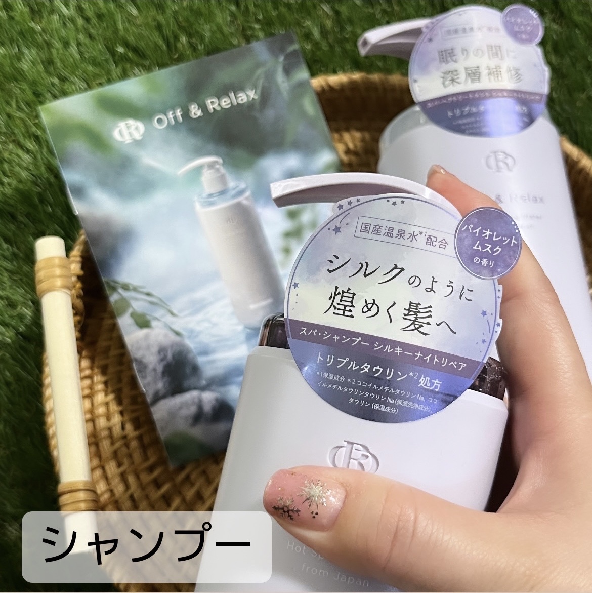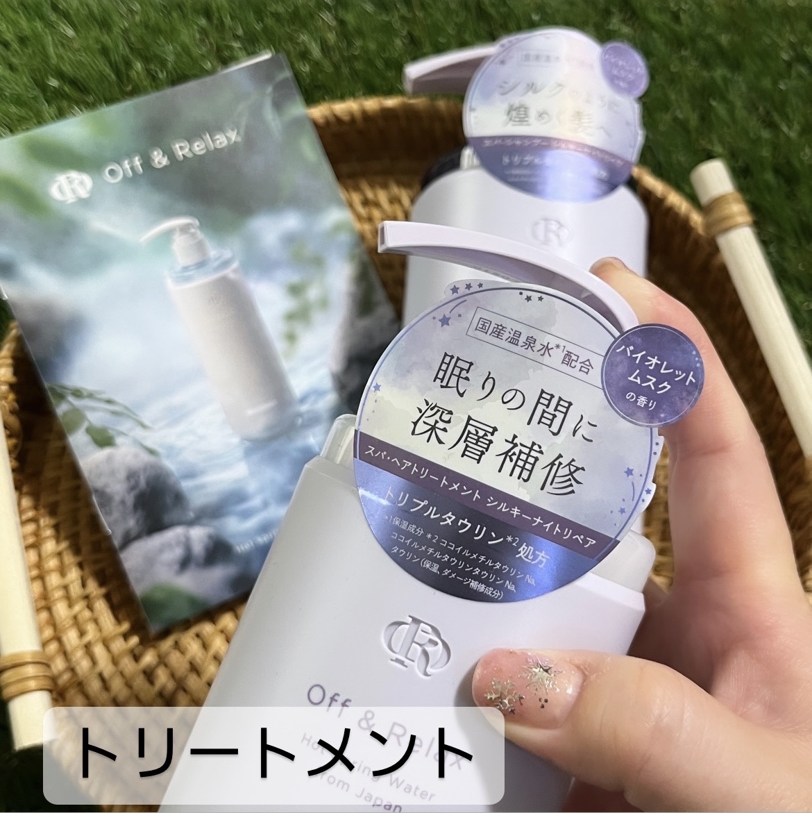 - Off&Relaxã·ã«ããŒãã€ããªãã¢ã¯é«ªã®ãã¡ãŒãžè£ä¿®ã«ç¹åããã·ãªãŒãºãåºé²ã»æ¹¯åã»ã¢ã«ãã¹ã®ïŒçš®ã®åœç£æž©æ³æ°Žãé ç®ãšé«ªã®æ±ããåªããèœãšããç¹å¥ã«é åãããããªãã«ã¿ãŠãªã³â»ïŒã髪ã«ããªã»ã³ã·ãäžããŸãã玫å€ç·ãããŒãããã¢ã«ã©ãŒããã®é«ªãã¡ãŒãžãäºé²ããããŒããããã¯ããã¯ãããžãŒâ»ïŒãæ¡çšããããã«äºå€§ä¿æ¹¿æåâ»ïŒãé åããŠé«ªãè¯ããè£ä¿®ããã¥ãŒãã£ã¯ã«ã®æŽã£ããµãã³åž°ãã®ãããªé«ªãžããªãªãžãã«ã«èª¿éŠãããã€ãªã¬ããã ã¹ã¯ã®éŠãã¯ããŸãã§éšäžããã®å€ã®è±å±æ·ããæŒããå²ãèªãè±ã ã®åã ããããã©ããç¥ç§çã§è ±æçãªéŠããããªãã®ãã¹ã«ãŒã ãå ã¿èŸŒã¿ãŸãã â»ïŒã³ã³ã€ã«ã¡ãã«ã¿ãŠãªã³Naãã³ã³ã€ã«ã¡ãã«ã¿ãŠãªã³ã¿ãŠãªã³Naãã¿ãŠãªã³â»ïŒã¡ããŠãã©ãŒã -ÎŽ- ã©ã¯ãã³é åã«ãããã¡ãŒãžè£ä¿®ã®ããšâ»ïŒãŠãºã»ã©ãããã³ãšã³ã¶ã€ã Q10ããã¬ãããŒã¹ããã¢ã«ãã³é žã倧è±ã¿ã³ãã¯
