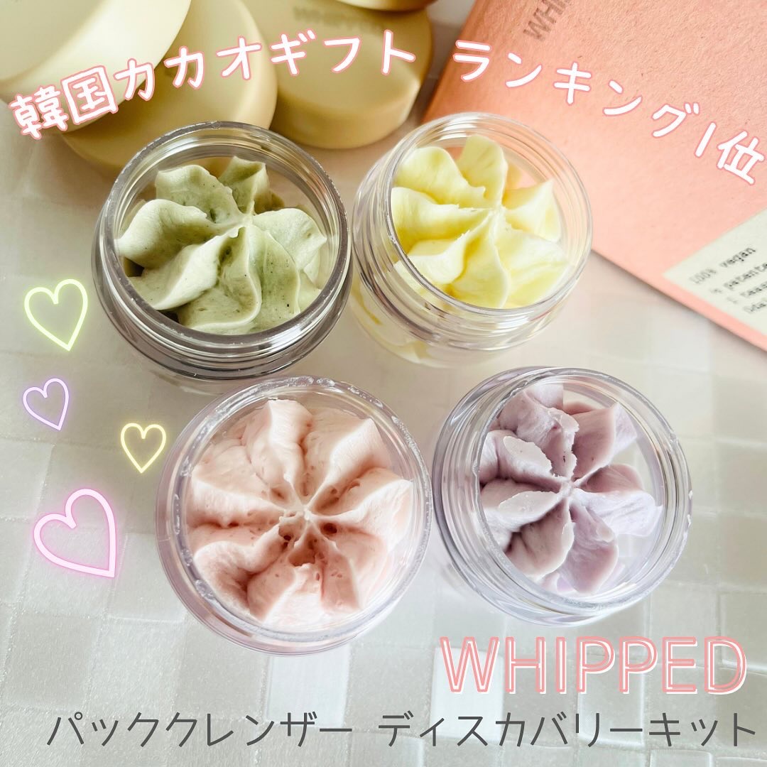 WHIPPEDホイップドヴィーガンパッククレンザーディスカバリーキット韓国カカオギフトランキング1位のベストセラーアイテムホイップみたいなパケが可愛すぎてギフトにまじでおすすめなんだけど、実は4/1にリニューアル🎉🩷ラインナップには人気のムフ...