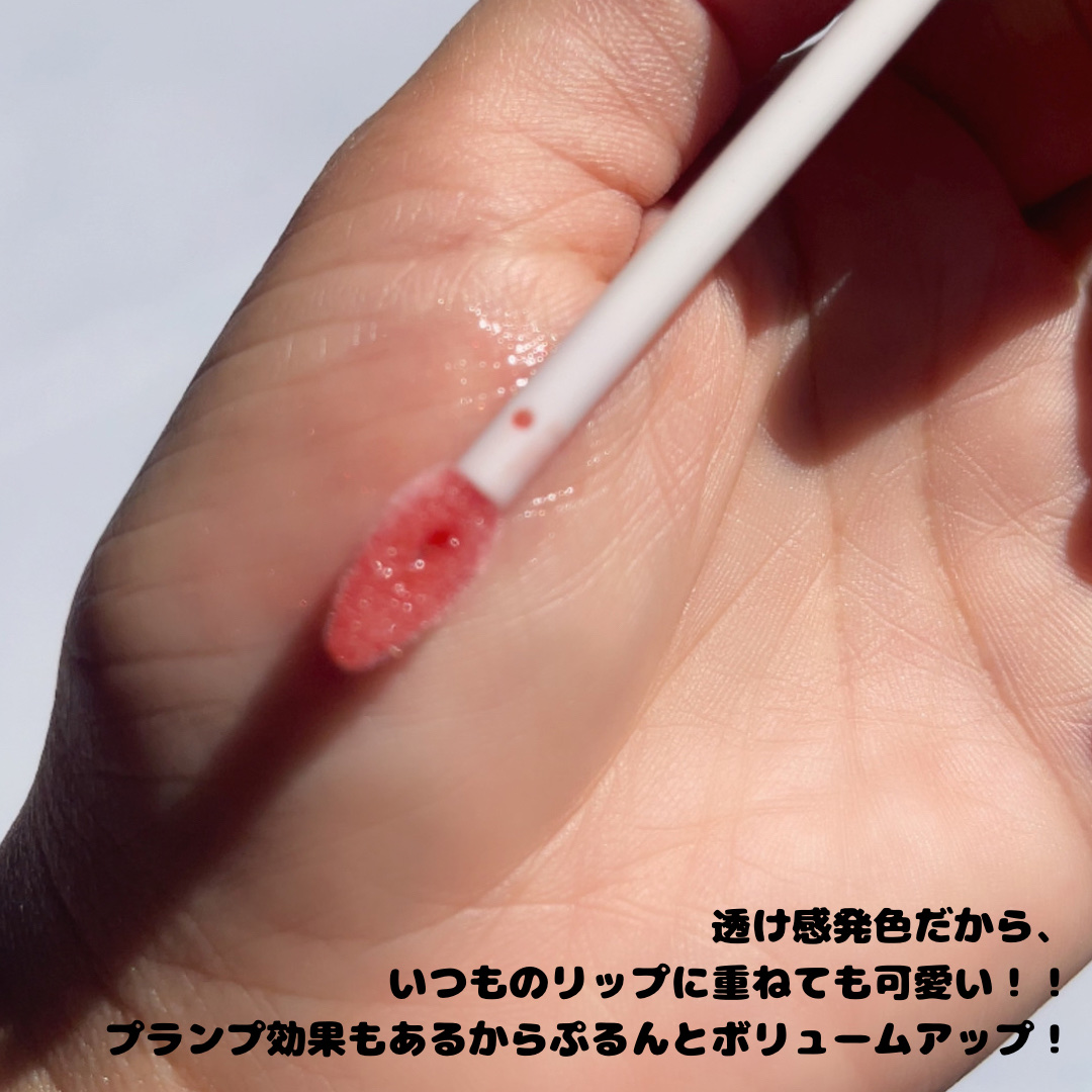 うさぎの舌リップみたいな色だよね? ほのかにプランプ効果があって、気持ちスースーするけど、 ピリピリしないからプランパー初心者でも使えるよ🌸 発色も良くて色持ちもいいからおすすめ! コロンとしたパケも可愛い🫶🏻