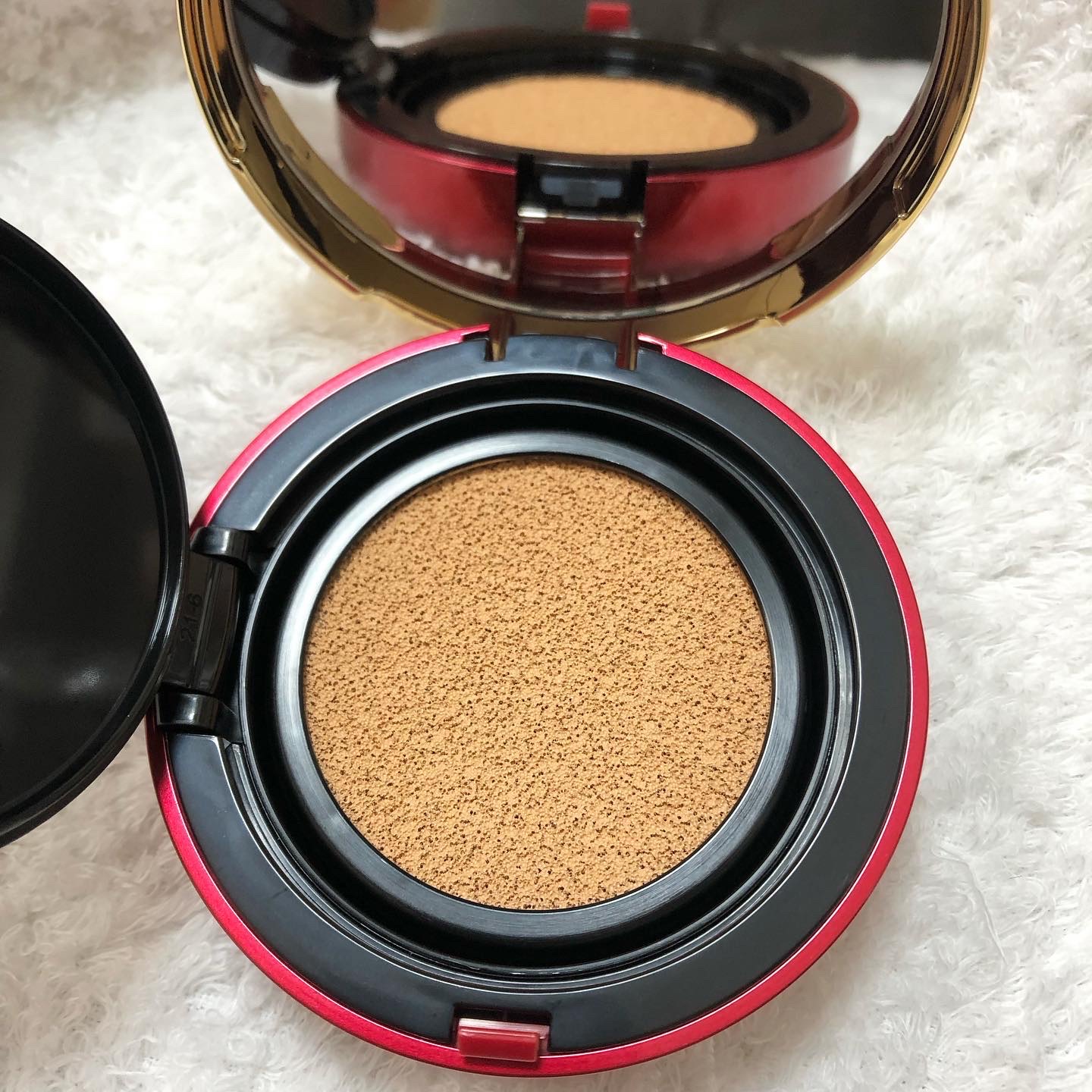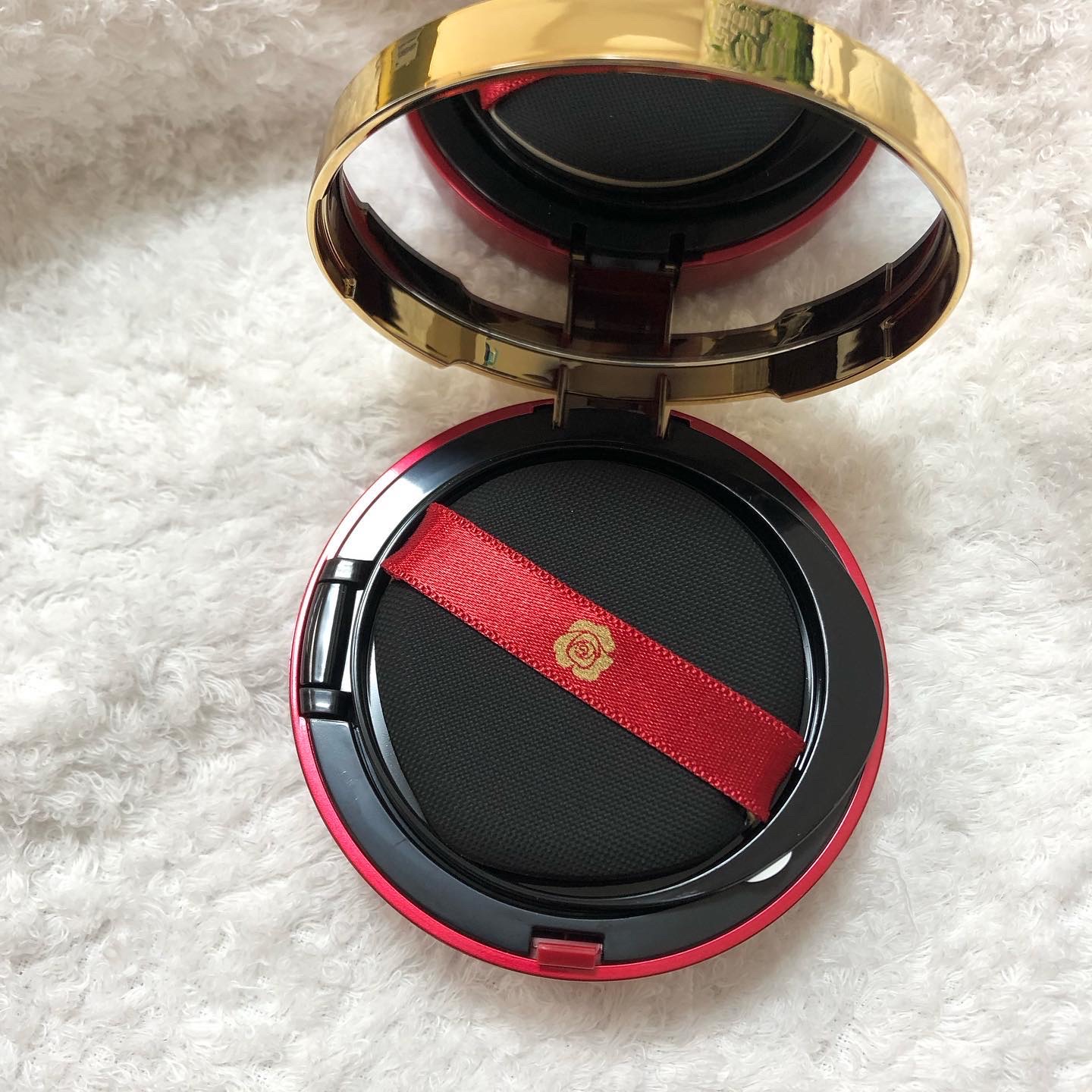 簡単にベースメイクが楽しめる クッションファンデーション。詰替用使ってリピート中。 赤×ゴールドの華やかなケース。1つで #美容液 #日焼け止め (SPF50+ / PA++++) #化粧下地 #ファンデーション #コンシーラー #ハイライト の6役を果たしてくれるの。 パフがドロップ型で小鼻とか細かいところが塗りやすいのが何気に嬉しい☺︎