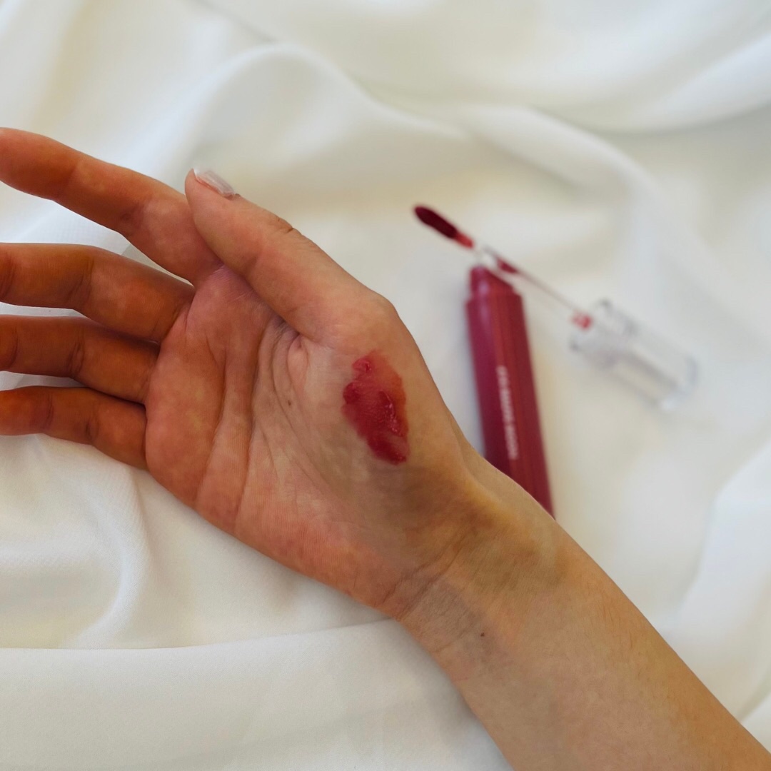 このティント独特の潤いがありつつ軽い塗り心地・オーバーリップに使用しても、色残り◎ うさぎ舌ピンクという感じ(青みピンク)・ツヤ感が強い なんども塗り直すと、青みが強くでる・唇の内側だけ色がついて残った