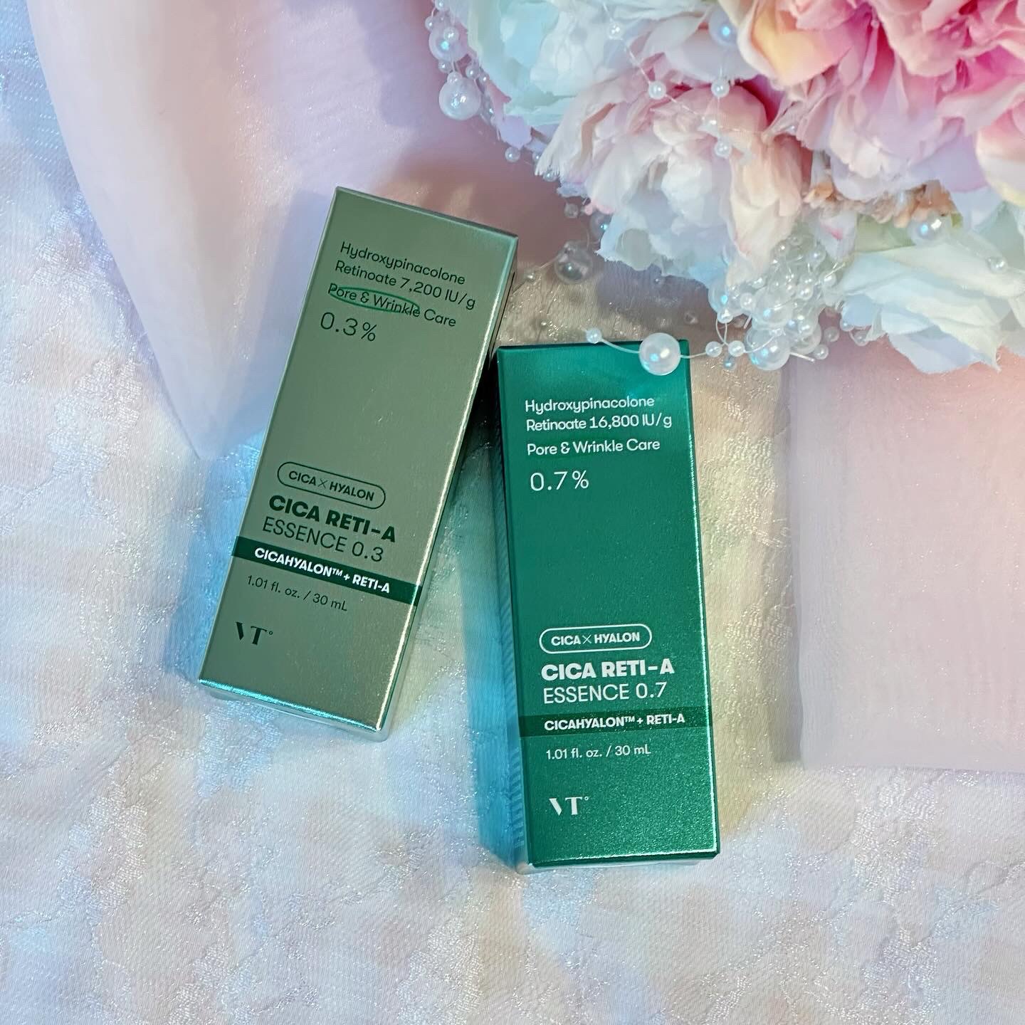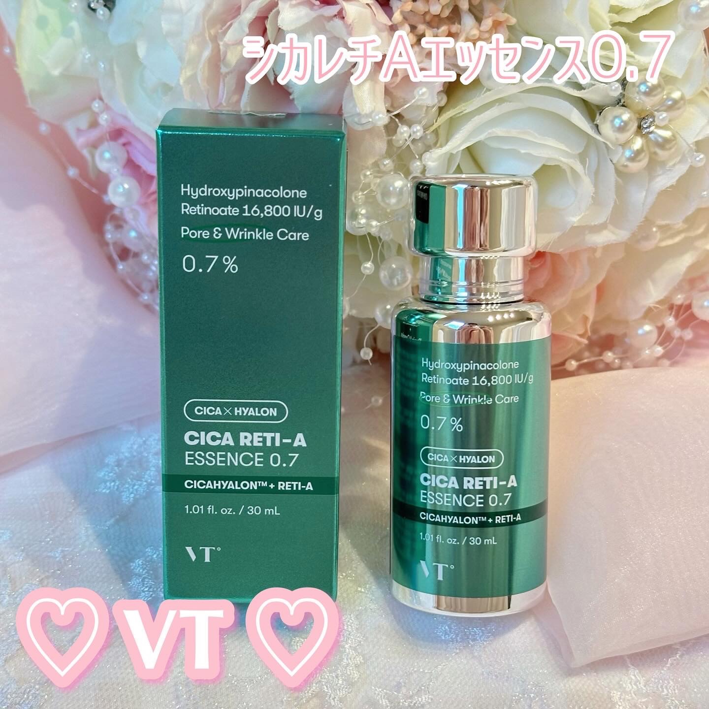 - レチノール成分*1を使ったことがある方へのエッセンス。 LHA成分*2配合で肌への刺激の少ない使い心地で、しっとり角層隅々までなじみキメ整った美肌へ導いてくれます。 更に天然由来の高純度BEAUACTIVE*3配合でハリを与え、健やかな素肌を保ちます。 "VTの高濃度*4シカレチノールシリーズで、肌レベルに合わせたソリューションを提案 #ハイレベル CICA RETI-A ESSENCE 0.7% 肌の角層隅々に潜む乾燥悩みまでエイジングケア*5 年齢肌を角質層からふっくらと潤いのあるなめらかな美肌に *1 整肌成分 *2 カプリロイルサリチル酸(整肌) *3 ヒドロキシステアリン酸(洗浄) *4当社従来品比 *5年齢に応じた手入れのこと
