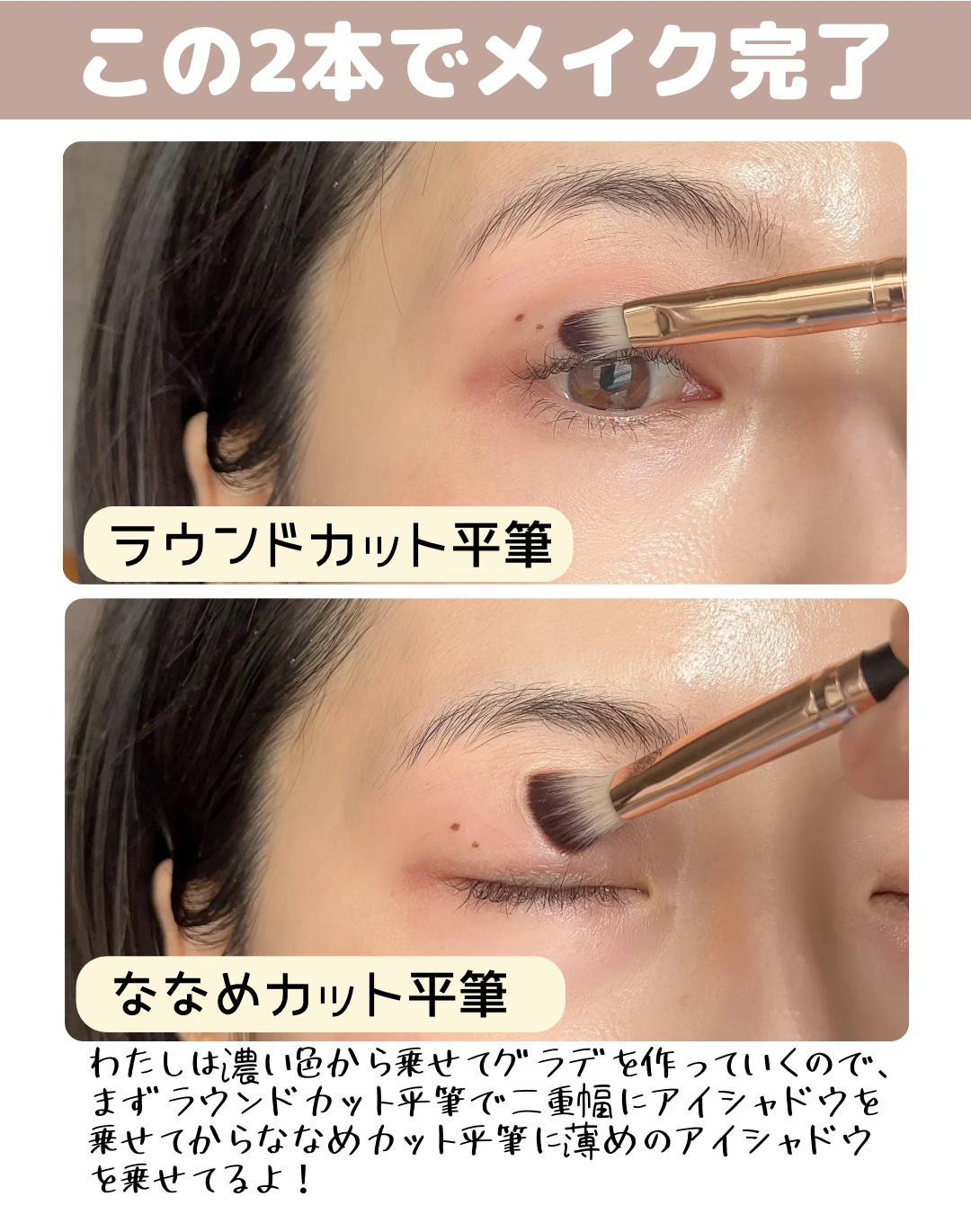 | 斜めカットのブラシは アイホール全体に ベースカラーを塗るのに適しています ·͜· シェーディング、ブレンディングも🙆♀️ | 詳細を見る | |