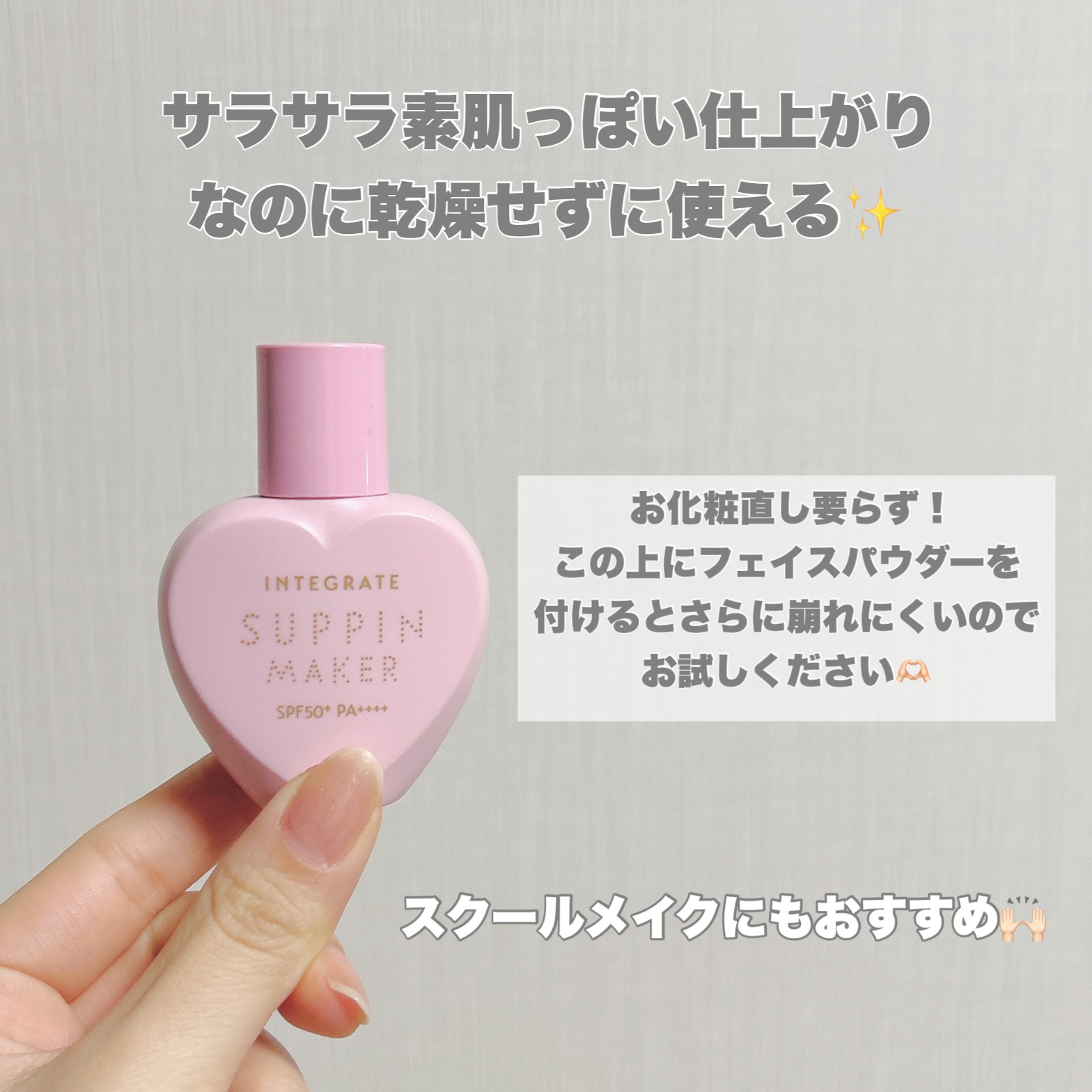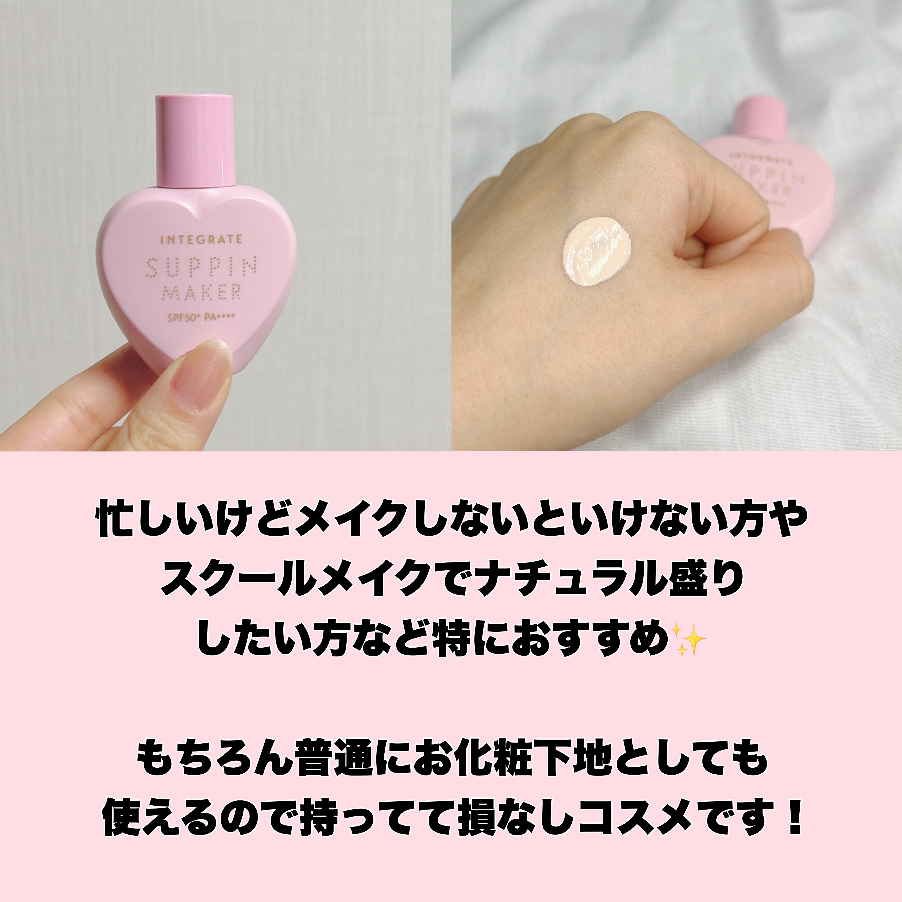 インテグレート すっぴんメイカートーンアップUV ¥1,540トーンアップするので肌が明るく素肌感が出る下地です!「透け感エフェクトパウダー」が毛穴や凸凹をぼかして、くすみない明るさと血色感のある肌にしてくれます✨カバー力も結構高くていい感じ...