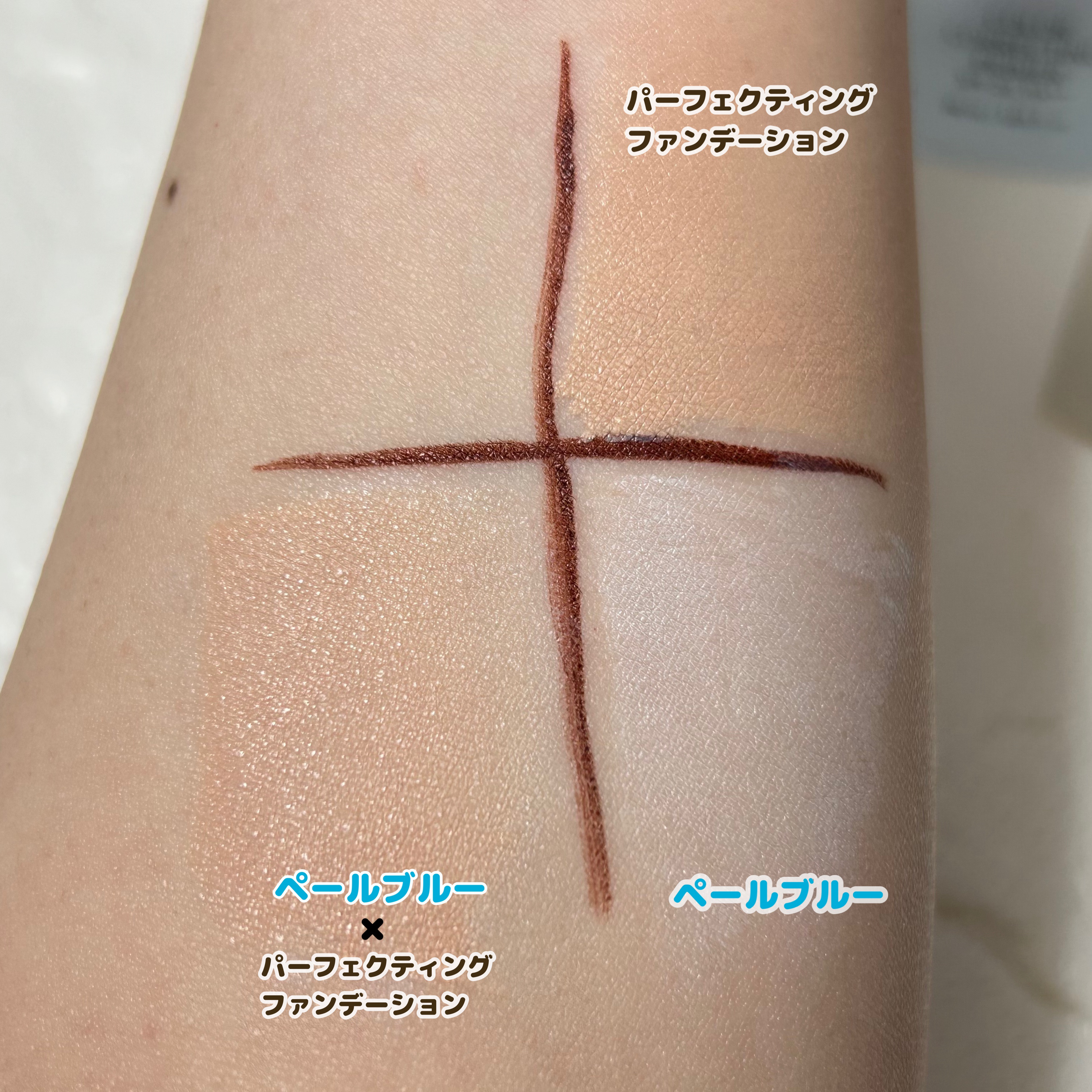- <01ミント> 水、メチルトリメチコン、シクロペンタシロキサン、メトキシケイヒ酸エチルヘキシル、DPG、グリセリン、フェニルトリメチコン、ジメチコン、ナイアシンアミド、トリ(カプリル酸/カプリン酸)グリセリル、PEG-10ジメチコン、ラウリルPEG-9ポリジメチルシロキシエチルジメチコン、シクロヘキサシロキサン、ジステアルジモニウムヘクトライト、パンテノール、1,2-ヘキサンジオール、硫酸Mg、セスキイソステアリン酸ソルビタン、(ジメチコン/(PEG-10/15))クロスポリマー、ナイロン-12、(ジメチコン/ビニルジメチコン)クロスポリマー、タルク、ステアリン酸、水酸化Al、ジステアリルジモニウムクロリド、香料、パルミトイルプロリン、ビオサッカリドガム-1、パルミトイルグルタミン酸Mg、パルミトイルサルコシンNa、パルミチン酸、クエン酸Na、エチルヘキシルグリセリン、合成フルオロフロゴパイト、トコフェロール、酸化スズ、(+/-)酸化チタン、グンジョウ <02ローズ> 水、メチルトリメチコン、シクロペンタシロキサン、メトキシケイヒ酸エチルヘキシル、DPG、グリセリン、フェニルトリメチコン、ジメチコン、ナイアシンアミド、トリ(カプリル酸/カプリン酸)グリセリル、PEG-10ジメチコン、ラウリルPEG-9ポリジメチルシロキシエチルジメチコン、シクロヘキサシロキサン、ジステアルジモニウムヘクトライト、パンテノール、1,2-ヘキサンジオール、硫酸Mg、セスキイソステアリン酸ソルビタン、(ジメチコン/(PEG-10/15))クロスポリマー、ナイロン-12、(ジメチコン/ビニルジメチコン)クロスポリマー、タルク、ステアリン酸、水酸化Al、ジステアリルジモニウムクロリド、香料、パルミトイルプロリン、ビオサッカリドガム-1、パルミトイルグルタミン酸Mg、パルミトイルサルコシンNa、パルミチン酸、クエン酸Na、エチルヘキシルグリセリン、合成フルオロフロゴパイト、トコフェロール、酸化スズ、(+/-)酸化チタン、グンジョウ <03ペールブルー> 水、メチルトリメチコン、シクロペンタシロキサン、メトキシケイヒ酸エチルヘキシル、DPG、グリセリン、フェニルトリメチコン、ジメチコン、ナイアシンアミド、トリ(カプリル酸/カプリン酸)グリセリル、PEG-10ジメチコン、ラウリルPEG-9ポリジメチルシロキシエチルジメチコン、シクロヘキサシロキサン、ジステアルジモニウムヘクトライト、パンテノール、1,2-ヘキサンジオール、硫酸Mg、セスキイソステアリン酸ソルビタン、(ジメチコン/(PEG-10/15))クロスポリマー、ナイロン-12、(ジメチコン/ビニルジメチコン)クロスポリマー、タルク、ステアリン酸、水酸化Al、ジステアリルジモニウムクロリド、香料、パルミトイルプロリン、ビオサッカリドガム-1、パルミトイルグルタミン酸Mg、パルミトイルサルコシンNa、パルミチン酸、クエン酸Na、エチルヘキシルグリセリン、合成フルオロフロゴパイト、トコフェロール、酸化スズ、(+/-)酸化チタン、グンジョウ
