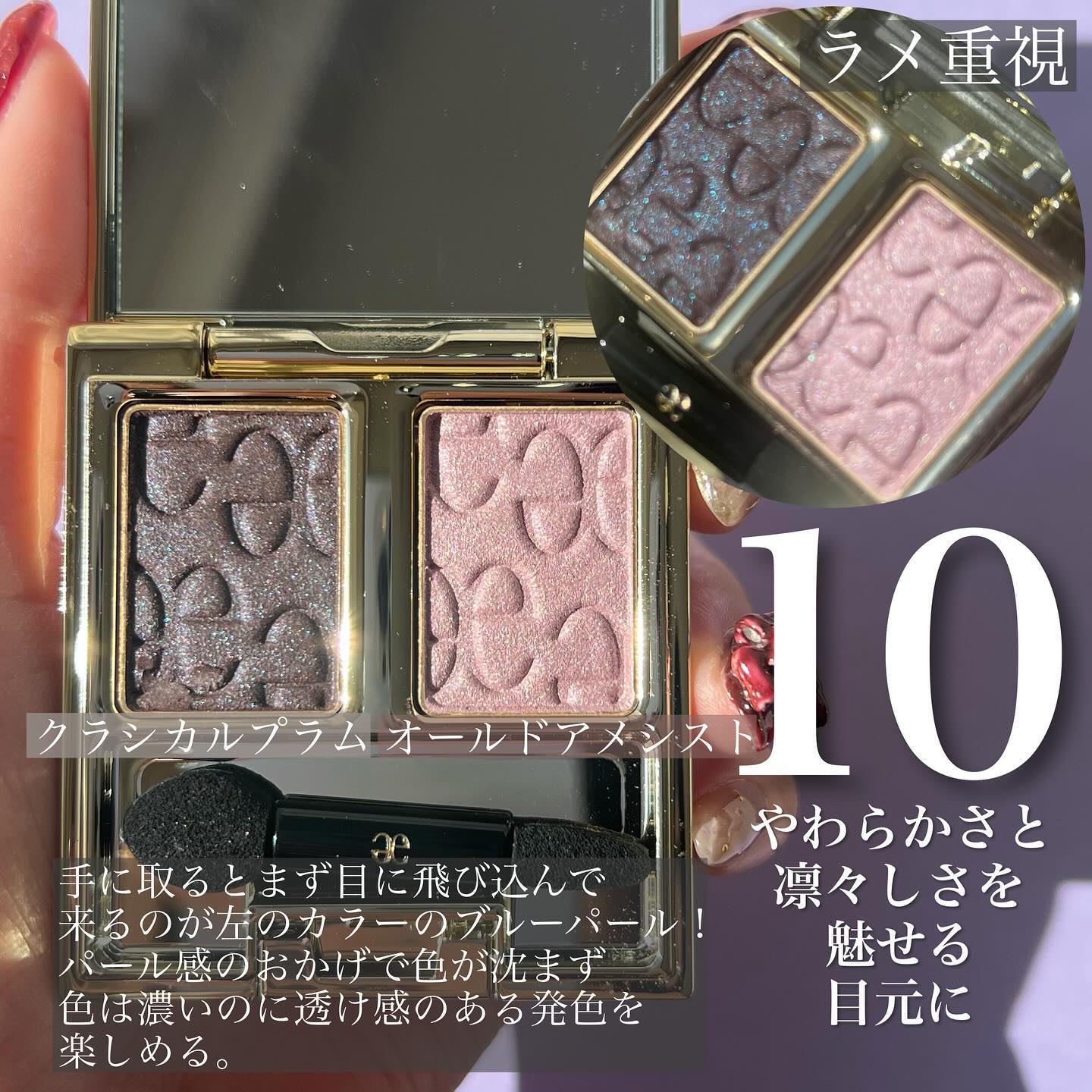 - ひとぬりで絶妙なグラデーション。 美しくとけ合う2色のアイカラー どう重ねても今っぽい。どれを選んでも私っぽい。まぶたでとけ合う2色のアイカラー。 気分のままに彩るだけで目もとの立体感も、肌との一体感も、美しく完成。 グラデーションをもっと楽しくもっと簡単に。