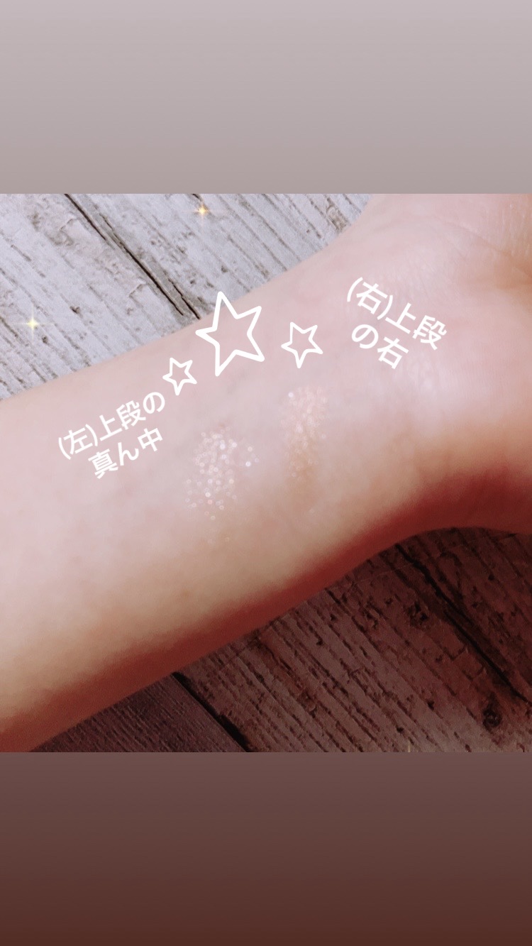 マット系のシャドウは淡い発色で、ケバくならず ナチュラルに仕上がります。 ラメは(アイシャドウベースも使ってますが、)粉飛びは気になりません。 キラキラでめちゃんこ可愛い((o(。・ω・。)o)) 他のアイシャドウパレット使ってても、涙袋とかのラメはわざわざこのパレット出して使うぐらい。 *減ってないように見えるのはメイク自体頻度少ないからだよ(•ᴗ•; )