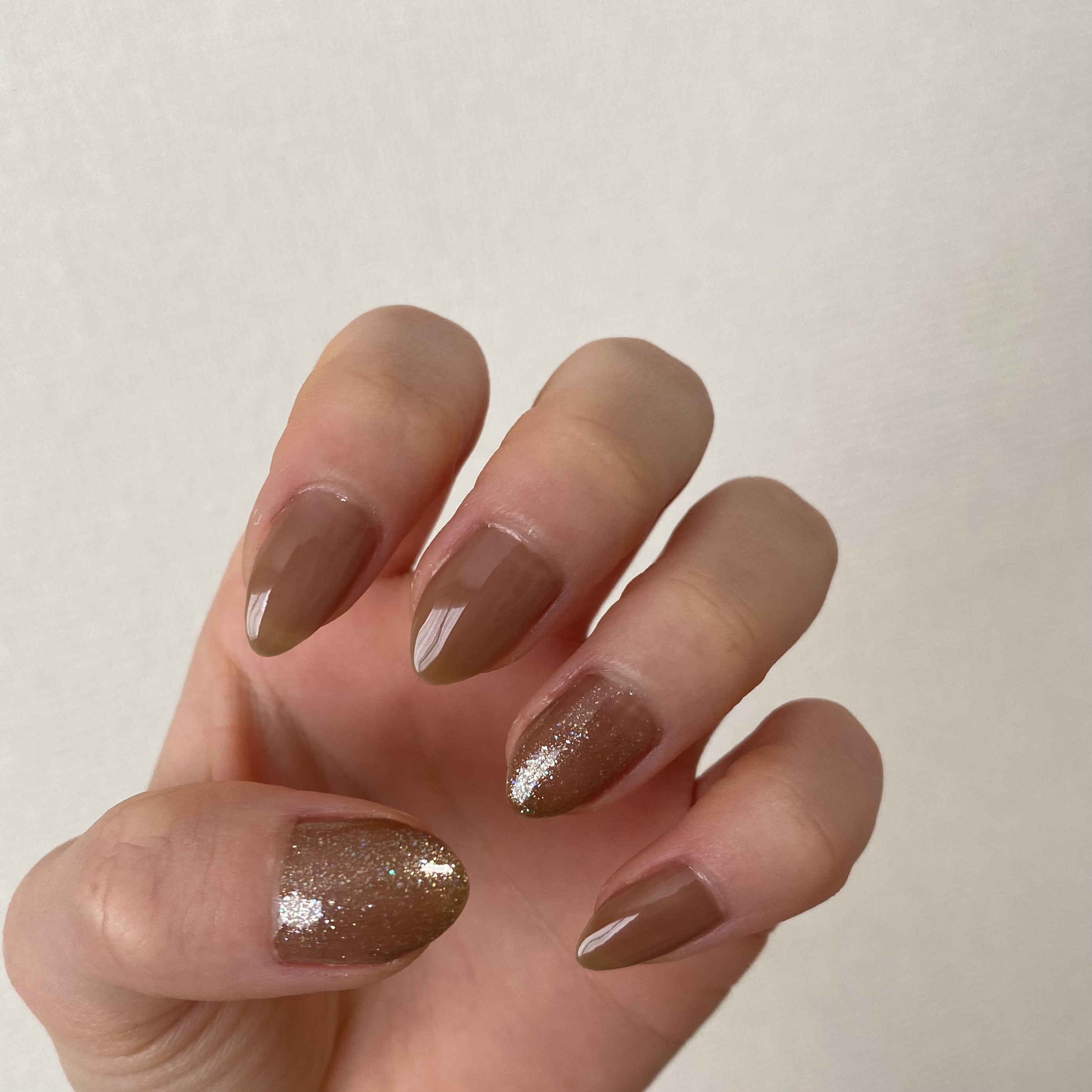 3COINSマグネットスティックネイルジェルM03チョコブラウン4回程重ね塗りをしてます!丸磁石で根元から爪先にあてました!程よいキラキラがとっても可愛いです🎶...