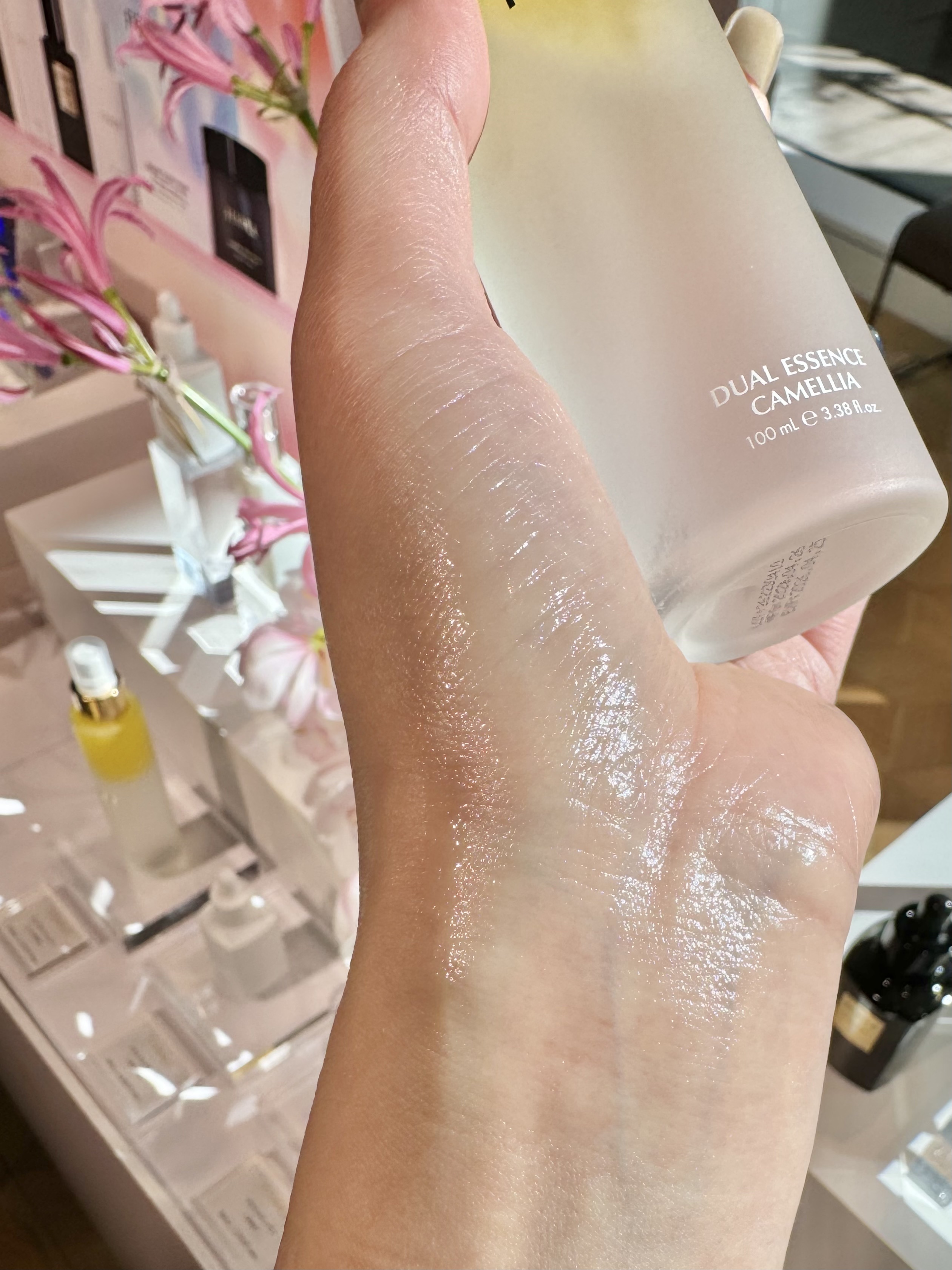 - デュアルエッセンスは、忙しい現代人のわがままなお悩みに応えるミスト美容液です。ファミュのアイコンとも言える「カメリア」から 、オイルやエキス、フラワーウォーターを抽出し、それぞれを効果的に組み合わせることで、保湿、バリア機能サポート、エイジングケア*1、透明感*2の4つのケアを一度に叶えることが可能に。そよ風のように細かくやわらかいマイクロミストが、肌全体をくまなく包み込みます。ローズ *3とジャスミン*4による、エレガントでみずみずしい香り。 *1年齢に応じたケア *2うるおいを与えて透明感をもたらす *3ローズ油 *4マツリカ花エキス