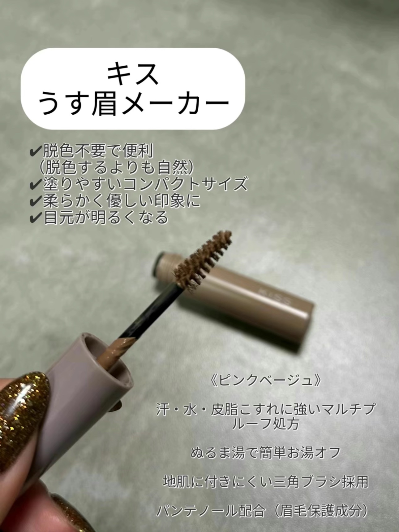 一番地肌につきにくい かなり高発色で、サッと眉色チェンジできる 自然にふわっとした眉毛になる 特にこれといった欠点は見つからず使いやすかった 柔らかい印象の眉毛になる 一番液含みがよくてべちゃっと地肌につきやすい