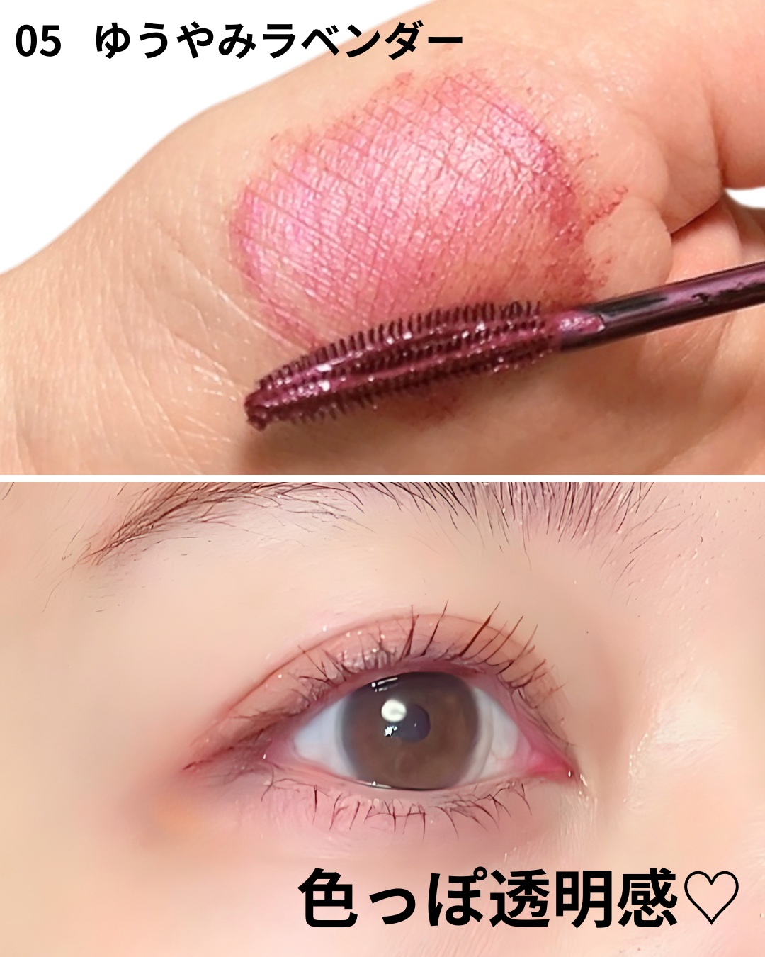 新色のゆうぐもグレージュは、黒に白を一滴プラスしたようなカラーで、透け感のあるブラックって感じの仕上がりになるよ🫶🏻 普通のブラックだと主張強すぎて、ブラウンだと存在感が薄すぎる...ってなっちゃう人にもおすすめ✨ スカイリフトブラシは、ブラシとコームのいいとこどりで、液がつきすぎないからダマにもなりにくいのがまじで良い~~👍🏻
