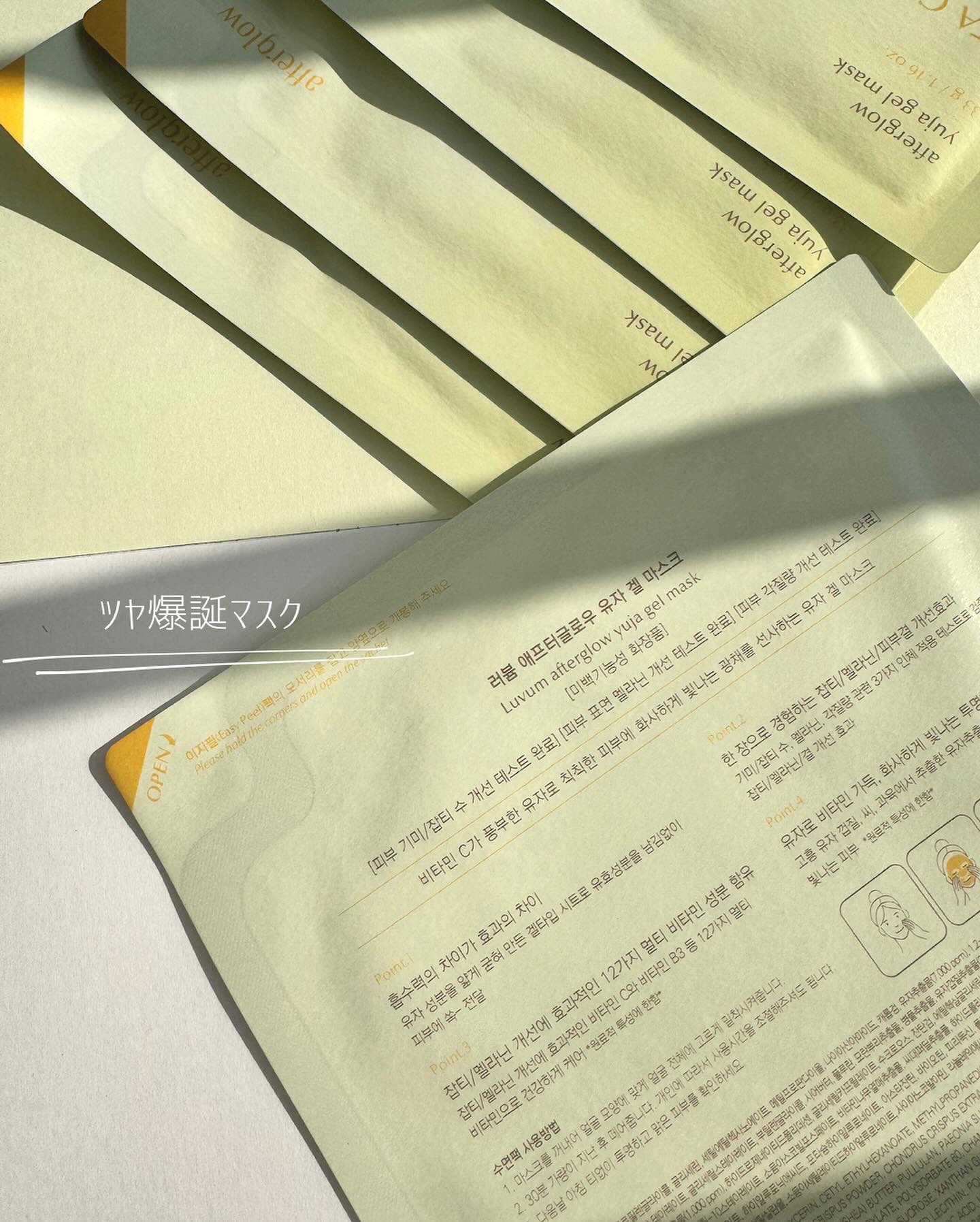 プルプルのゲルマスクだよ♡ スリーピングマスクとしても使えて マスクを貼ったままそのまま寝れちゃう🐑💤 【アフターグロウゆずゲルマスク】 オリーブヤング全カテゴリーで1位を獲得した大人気のゲルマスク! ビタミンCをたっぷり含んだゆずの成分が くすみやトーンアップに… 透き通ったお肌のケアにピッタリなアイテムだよ。