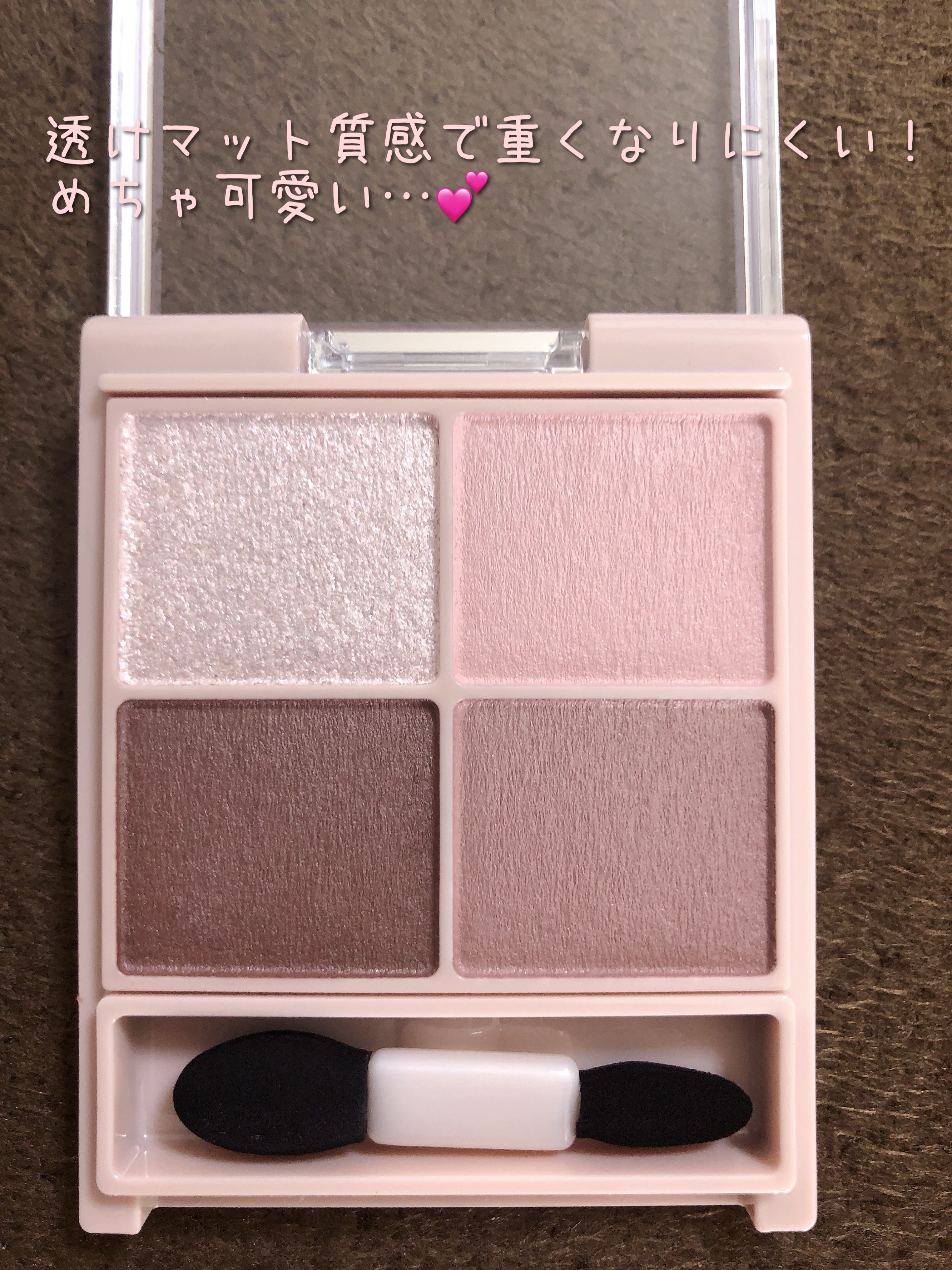 - シルキースフレアイズの姉妹品♡ 肌に溶け込むような透けマットシャドウ 透け感のある柔らかい仕上がりになるマット3色と、透け発色の繊細ラメ1色のパレットシャドウ♡ 完全マットアイや、ラメ×マットアイなど、メイクのパターンを楽しみましょう!