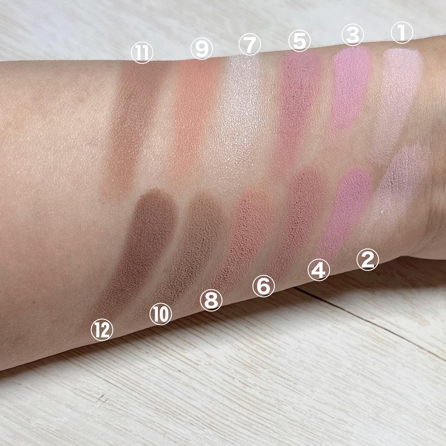 テクスチャーはサラサラだけど、飛び散るわけではなくて吸い付いてくる感じでした。 グリッターは、湿式のウェットさと押すとムニっとして、ちょっとゼリーテイストな気がします。ギラギラすぎなくて使いやすかったです。 ⑥はピンクも混ざっていてとても可愛い。アイスクリーム屋さんのストロベリーチーズケーキみたいな🍓これも、白すぎなくて肌馴染みの良い白系なので使いやすかったです。