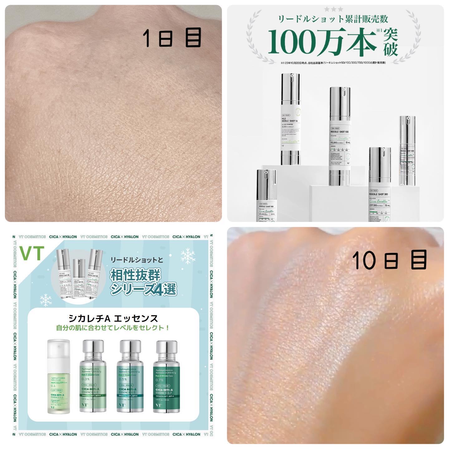 リードルショット100は、チクチクするけど 痛すぎなくてほんのりチクチクするなぁっていう感じ! 次の日の洗顔の時も、痛くなくて使いやすい! リードルショット初心者の方にもオススメ🔰 肌のキメが整ってきた感じがします🎶 ビタライトエッセンスvc1000は、自分でエッセンスとパウダーを混ぜて使うから フレッシュなまま使い切れる美容液♡ 残った時は、1週間程度で使い切って冷蔵庫で保管! チクチク感は、ほんのりする程度で伸びがよく 使いやすいです!ビタミンケア大切(๑•̀ㅂ•́)و✧