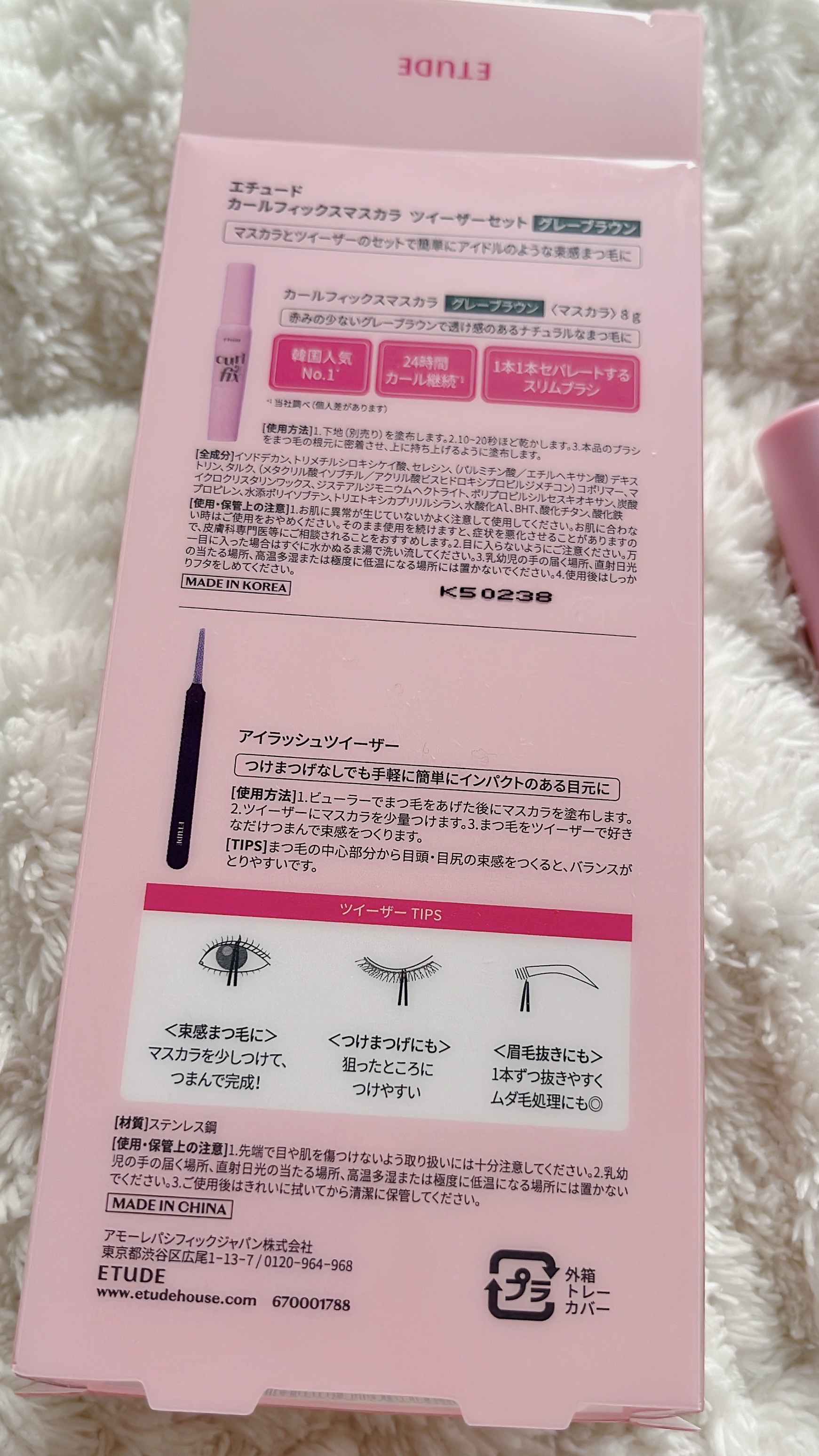 - 韓国No.1*¹カールフィックスマスカラ! 〈24時間*²繊細で美しいカールをキープ〉 まつ毛の上向きカールを長時間キープし、繊細で美しいまつ毛に仕上げます。 〈にじみにくい!ウォータープルーフ処方〉 涙や汗、皮脂にも負けないウォータープルーフ処方で、どんな時も、にじみにくい上向きまつ毛に。 〈細かい束感でナチュラルなセパレートまつ毛に〉 細かく密集したブラシで1本1本をセパレートし、ダマになりにくくナチュラルな束感に仕上げます。 *¹カールタイプマスカラ売上シェア(外部機関調べ)集計期間2015/9/14~2023/9/10(n=9700) *² 当社調べ。効果には個人差があります。