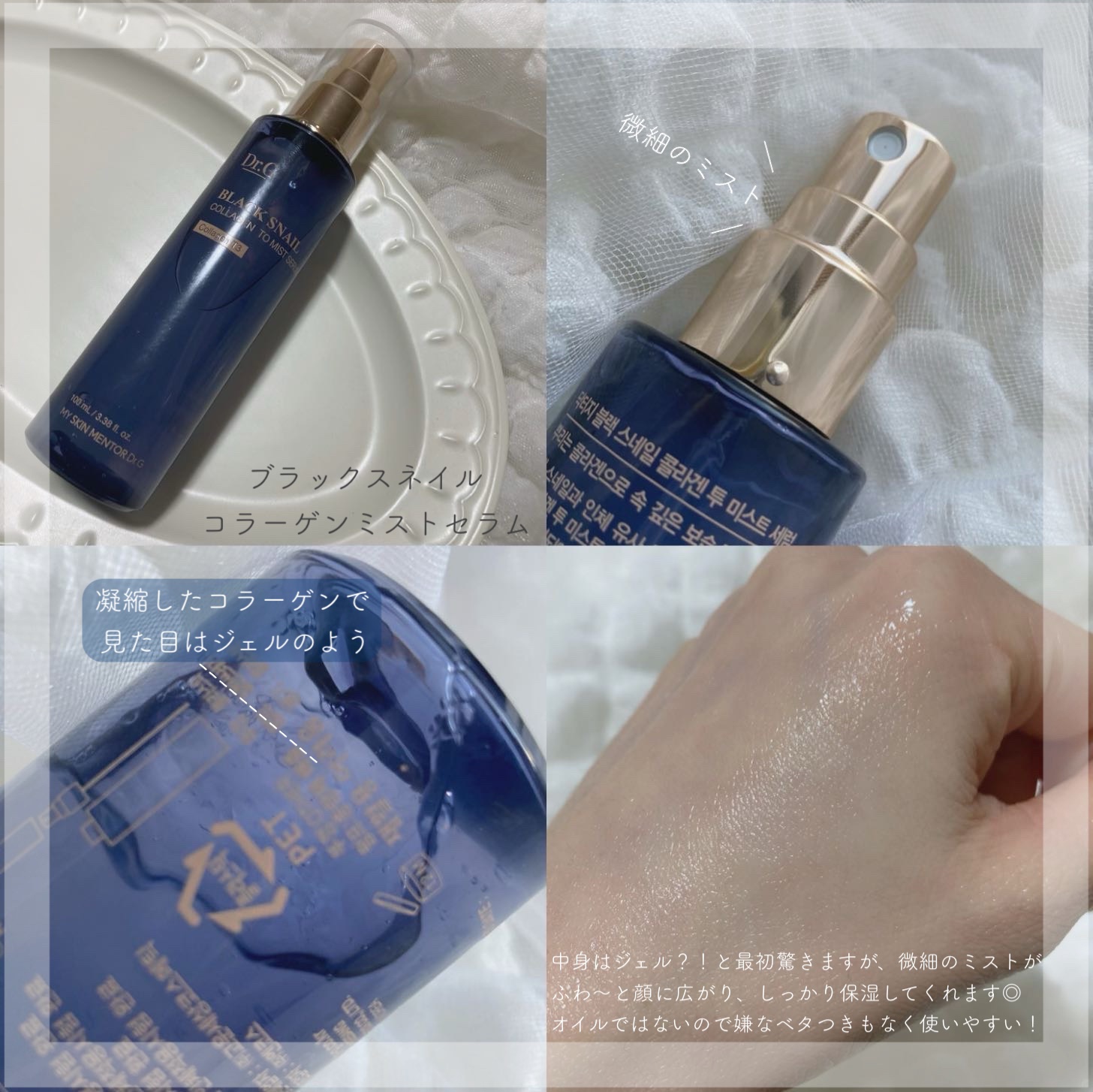 弾力、保湿、美白、シワ改善にアプローチする潤いミスト✨ ブラックスネイル—栄養ケア ☑︎T3コラーゲン—ハリ・弾力ケア ☑︎独自成分アクティブムチン—コラーゲンの生成を促進 べたつきはほとんどなくてさらっとした使用感です。脂性肌にもぴったりでたくさん使いたくなる🤍