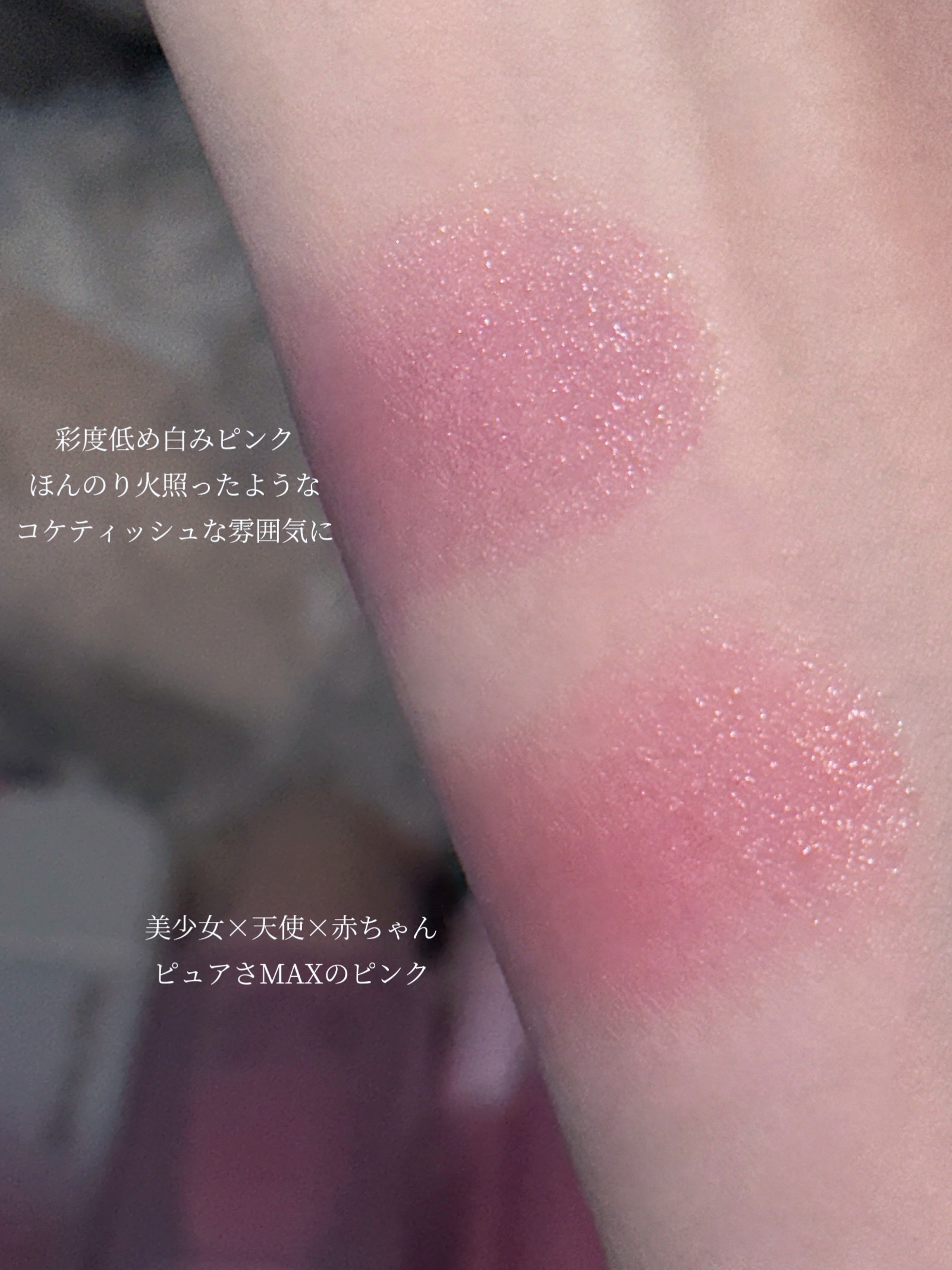 ミルク感ある白みの発色でめちゃめちゃかわいいカラーです🥹 単体でもかわいいし、重ねてグラデにしてもかわいい! 植物性天然オイルヴィーガン成分でしっとりとしたつけ心地でほんのりあまくて強すぎない感じのすごくいい香りも好き♡ 全部白が入ってるからパステル感と明るさがあって本当にかわいい。盛り耐性ない私はすごく使いやすかった。