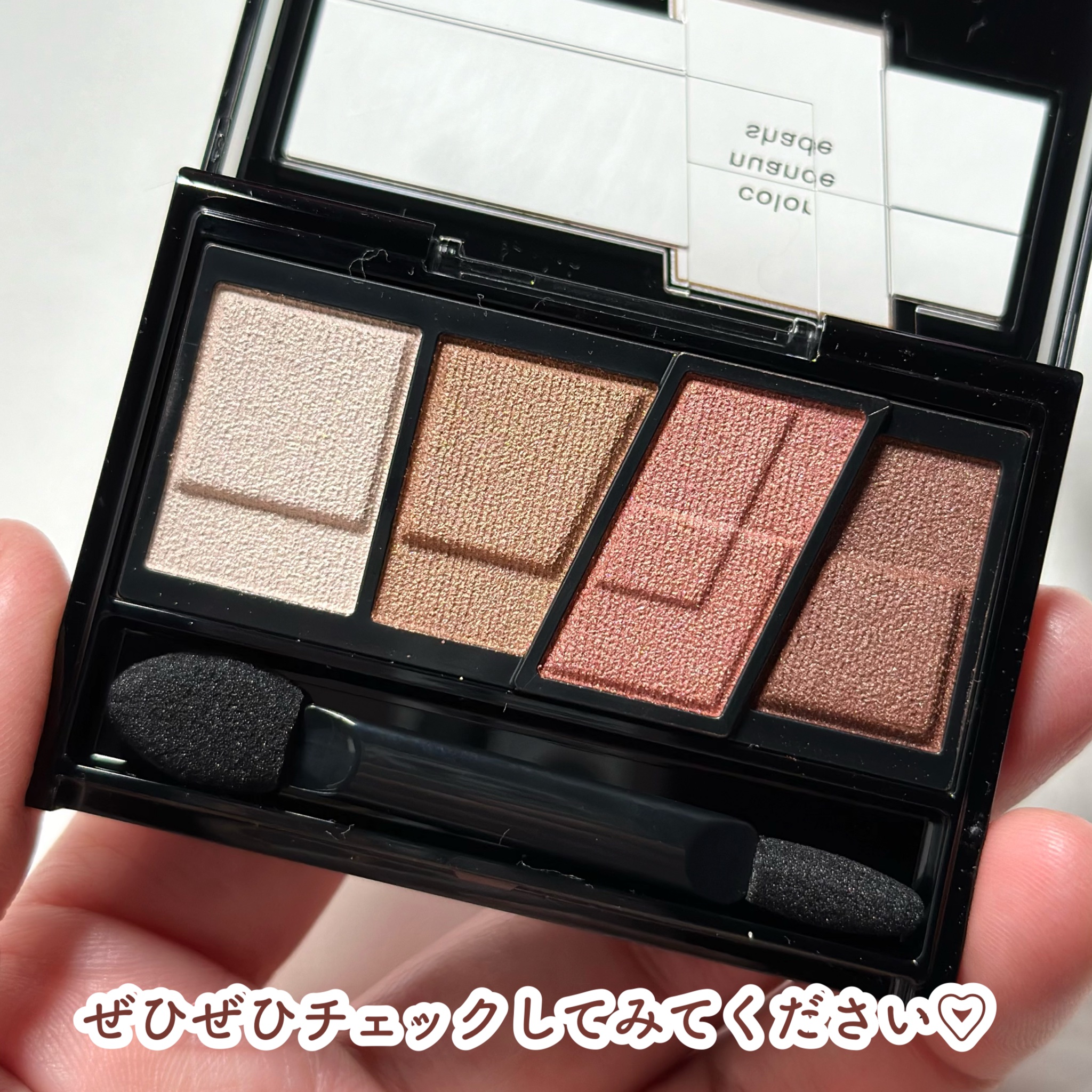 - カラーニュアンスシェードを目尻に入れるだけで目幅を大きく見せ※、抜け感のある明るい大きな目元に仕上るブラウンアイシャドウ。 ブラウン×カラーニュアンスの4色セット。※メイクアップ効果
