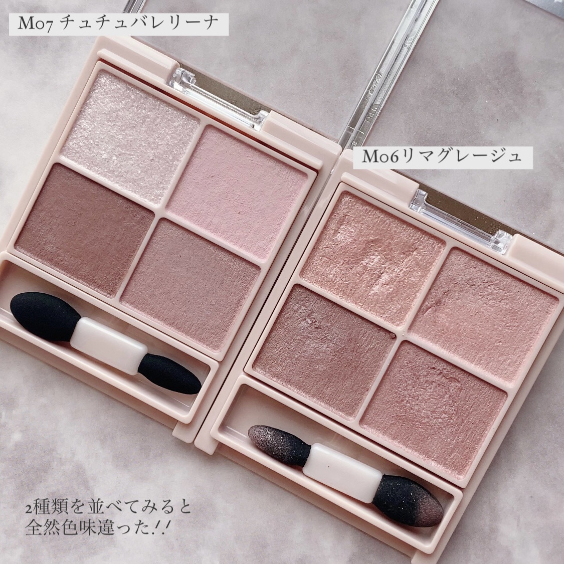 物静かなミュートトーンにロージ色が加えられたディープなミュードロージ&パープルの組み合わせ🎀 しっとりめの粉質で粉飛びしにくくふんわり発色だけど色がちゃんと付く◎ 全色使いやすい色味でこれ1つでアイメイク・眉・チークを仕上げられるからお泊まりの時にも便利だと思った🌷