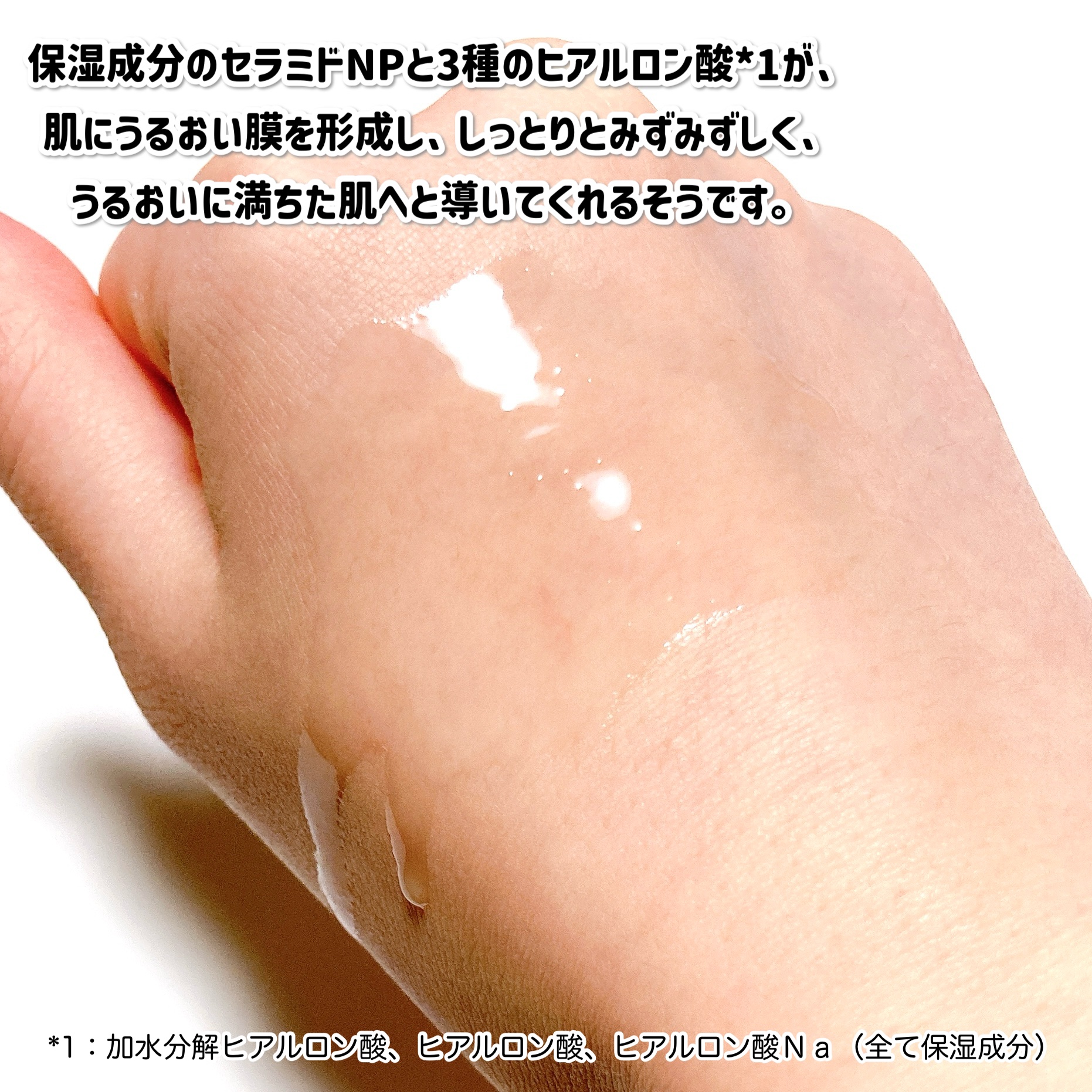 肌バリアを強化・回復する効果のあるシリーズで、保湿成分のパンテノルリポソームが配合されています。 化粧水と美容液のいいとこどりをできるトナーで、乾燥肌の私にぴったりでした。 6種類のヒアルロン酸でお肌に水分チャージしてくれます。