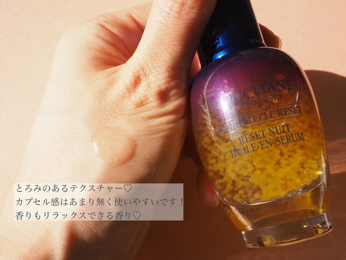 まず何より香りが…幸せ。馴染ませた最後に手に残った香りをゆっくり嗅ぐとめちゃくちゃ癒されます。ロクシタンの夜用美容液の中で売上No.1だそうですよ〜。永久花の生命力×肌睡眠サイエンス厳選した植物の力で、お疲れ肌も、ゆらぐ肌も、わずか6時間でハ...