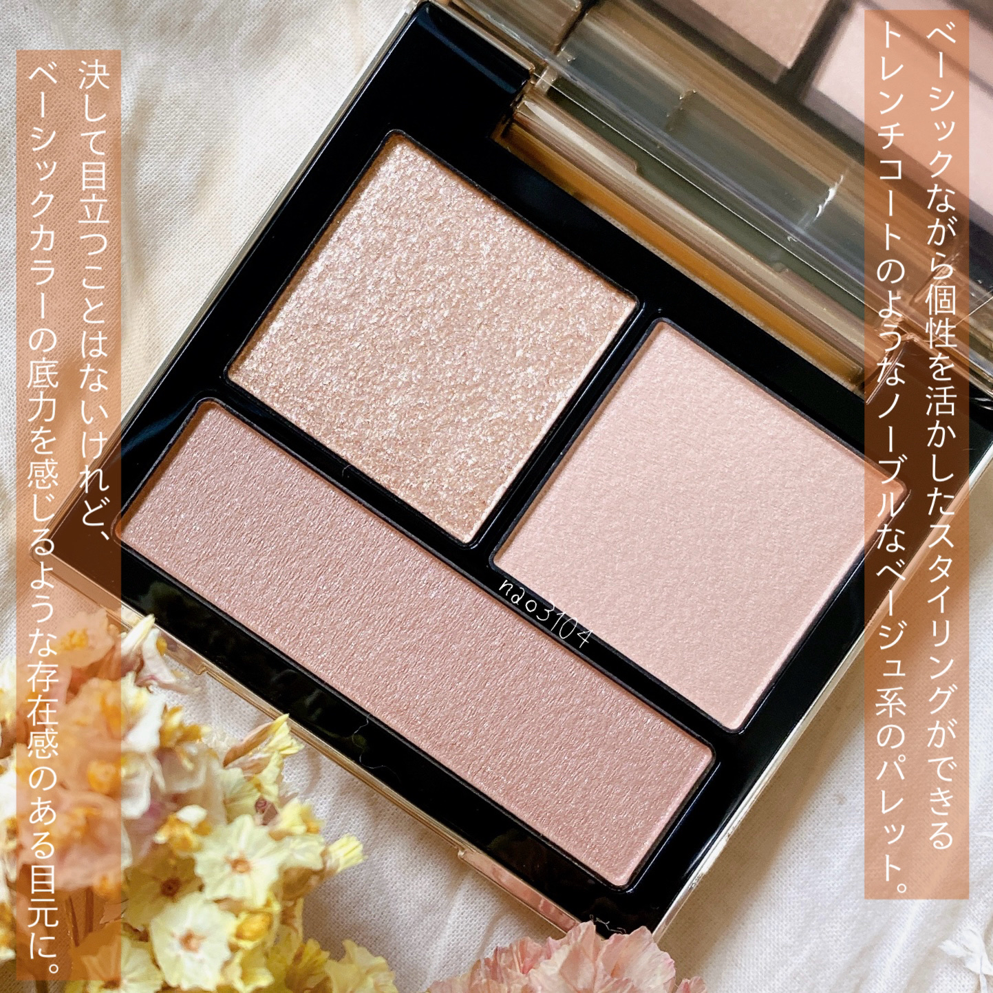 - 重ねるほどに透き通るカラーが、眼差しにやさしい力をくれる。エフォートレスからエレガントまで、どんな表情にもしなやかにフィットする、わがままなアイパレット。 インパクトのある3つの質感を自由にレイヤードし、唯一無二の個性を創り上げるアイパレット。 あらゆるスキントーンに対応する透明感のある発色で、自由自在に印象を変えることができます。 オイルコーティングパウダー採用でまぶたにすっと溶け込むようになじみ、ぴったりと密着するテクスチャーを実現。 よれにくく、美しい色と輝きが持続します。4種の植物保湿成分とヒアルロン酸を掛け合わせ、長時間目もとをしっとりと守ります。