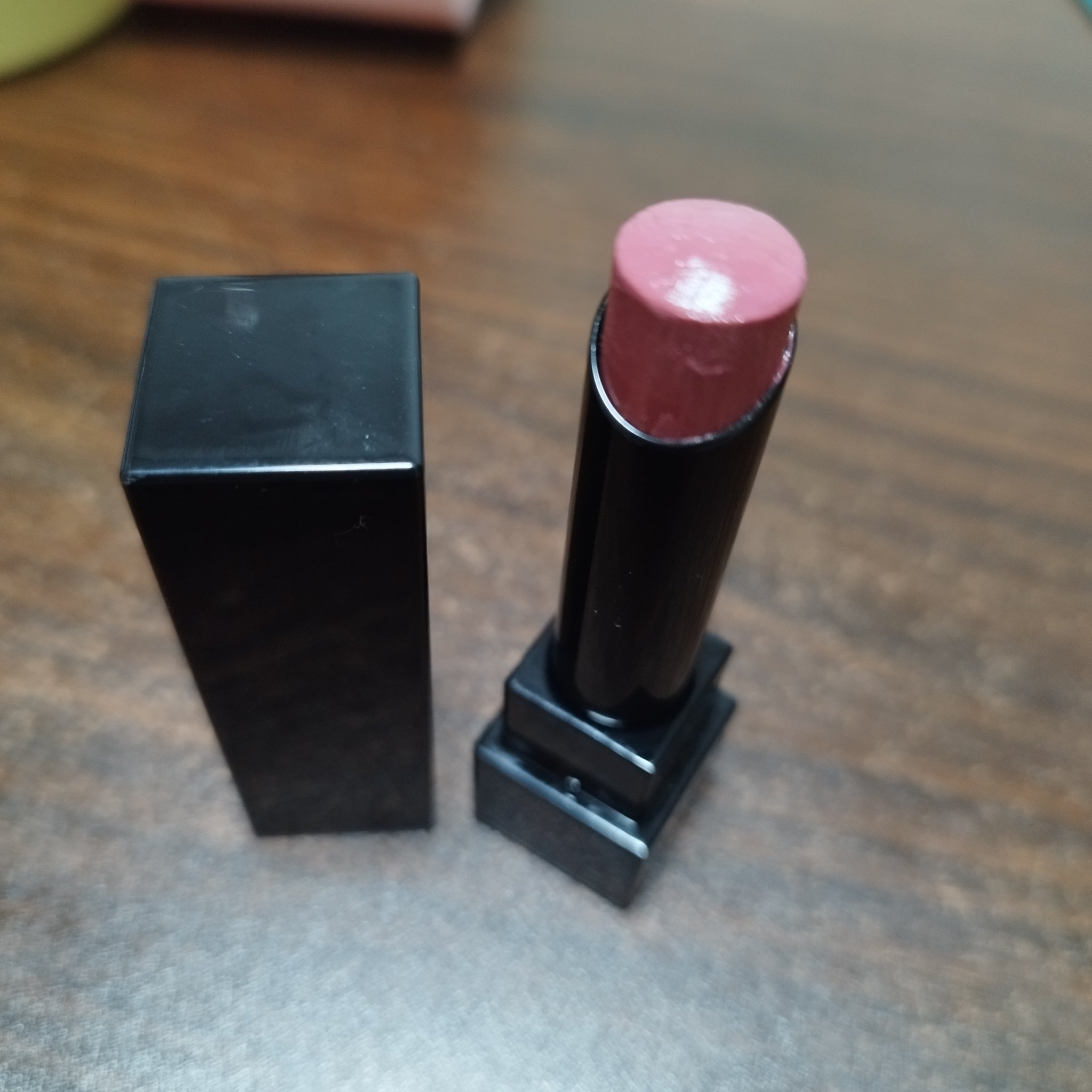 すっごいふか~い赤。 とってもスルスル塗りやすいです。 リップケースの先に鏡がついてて、そこを押すとしたからリップが出てきます プチプラコスメの中では1800円するから値段はちょっと高いなあと思いました