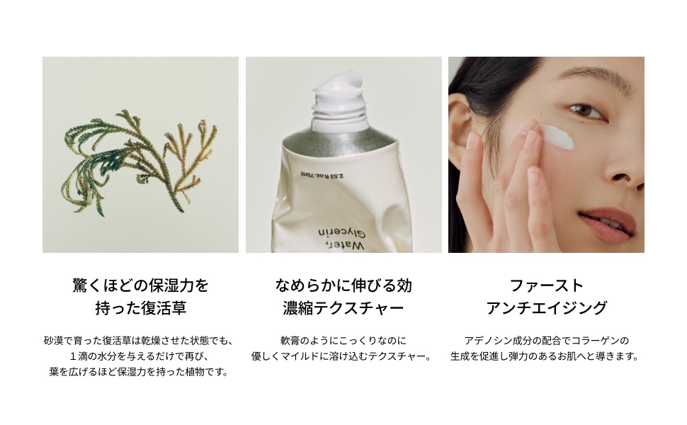 | テクスチャーはとろみのあるリッチなクリームで、肌にのせるととろけるように広がります。 | 詳細を見る | ||